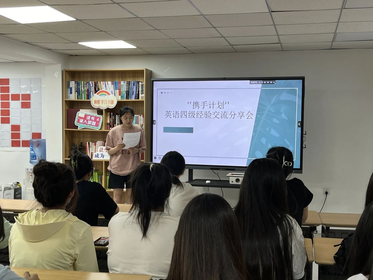 为助力即将参加英语四级考试的同学,切实提升其英语学习能力及水平、增强备考信心,管理与传媒系以学生一站式社区为重要依托,于2024年6月12日下午17:10在13号楼星耀社区活动室举办了主题为“携手计划”的英语四级分享交流会。