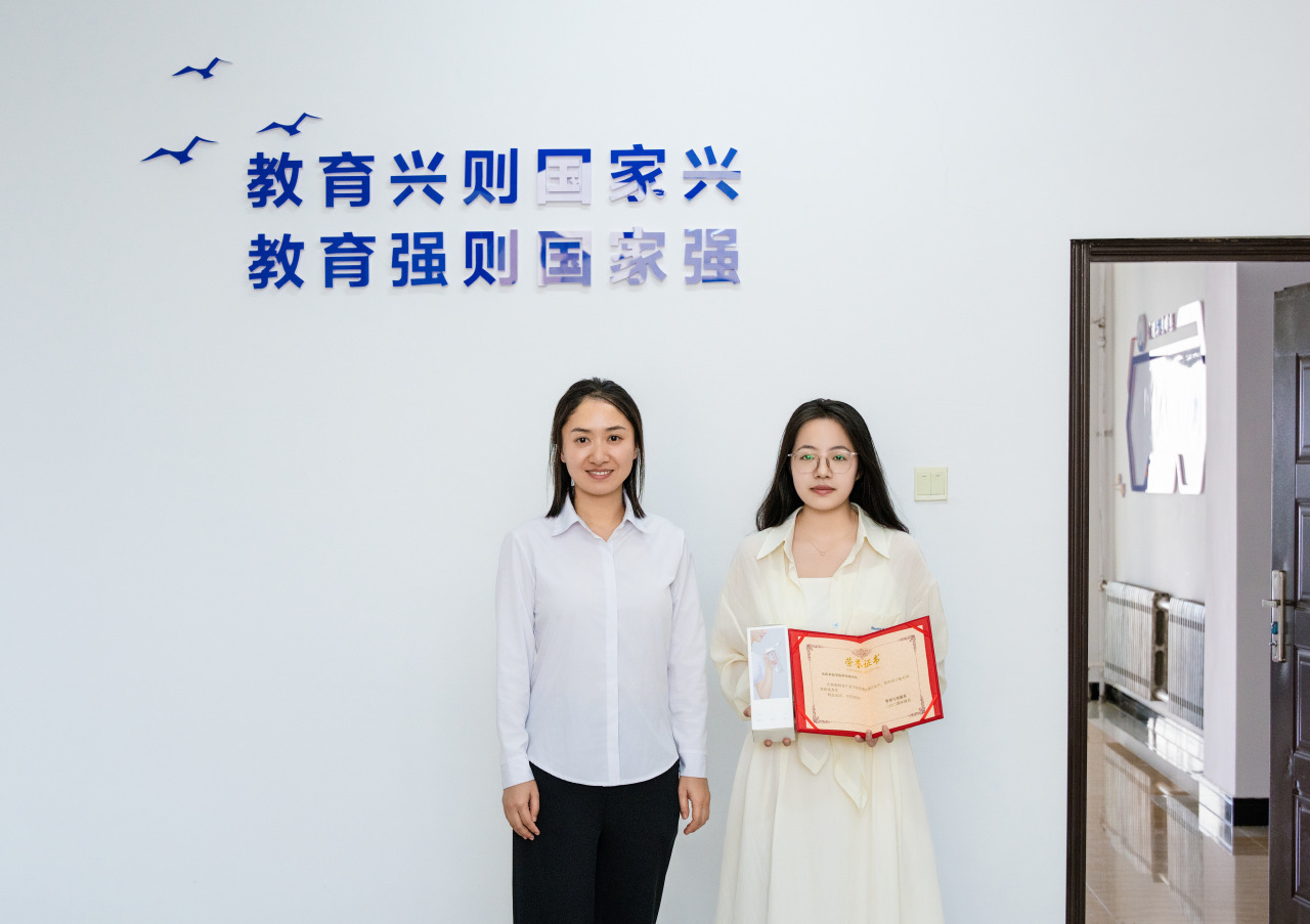 历时两个月的9428cn太阳集团古天乐智能财务产业学院院徽征集活动圆满落下帷幕。经过角逐,我系网络与新媒体专业 2101 班杨艺同学斩获一等奖,2101 班佟佳诺同学斩获优秀奖。6 月 13 日下午,管理与传媒系主任郑鑫为两名同学颁奖。