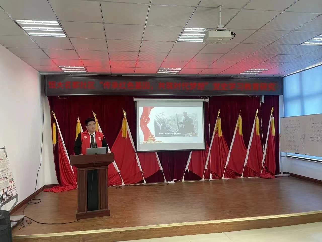 探访之余,宣讲团还深入恒大名都社区,开展了一系列丰富多彩的党史宣讲活动。他们精心准备了宣讲稿件和PPT,用通俗易懂的语言和生动鲜活的案例,向社区居民特别是青少年讲述了党的光辉历程和伟大成就。在“小小红船,大大梦想”的主题党课中,宣讲团成员以生动的讲解和互动问答的形式,激发了孩子们对党的热爱和对祖国的自豪感。他们不仅传授了知识,更在孩子们心中种下了红色的种子,让革命精神得以薪火相传。