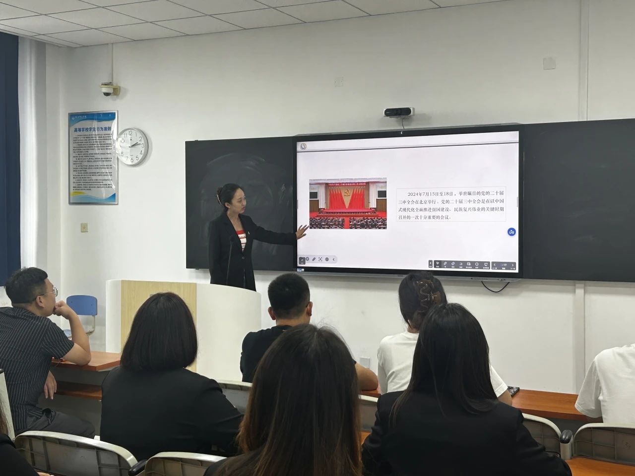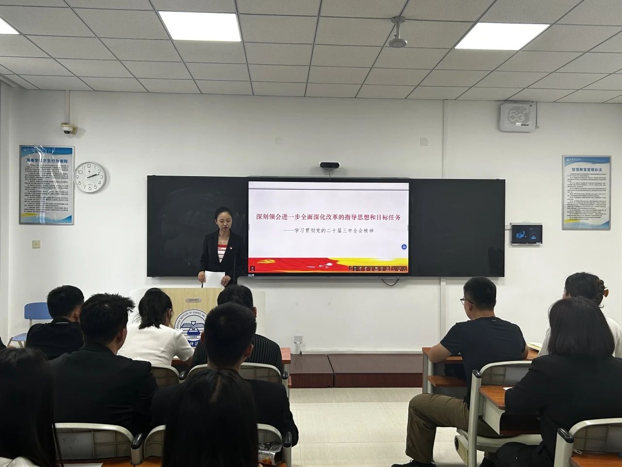 为进一步深入学习贯彻党的二十届三中全会精神,研究部署贯彻落实举措,9月29日上午,管理与传媒系党总支理论学习中心组就深入学习党的二十届三中全会精神为专题开展党课学习。本次党课由党总支副书记蒋明儒同志讲授。