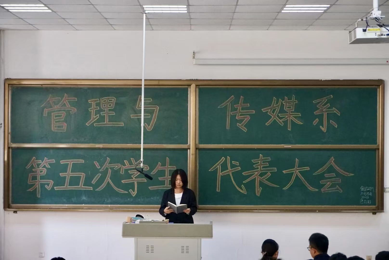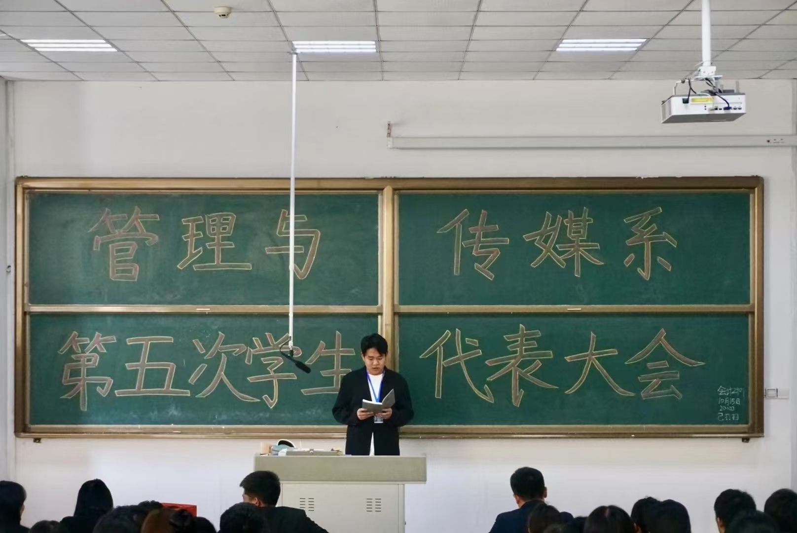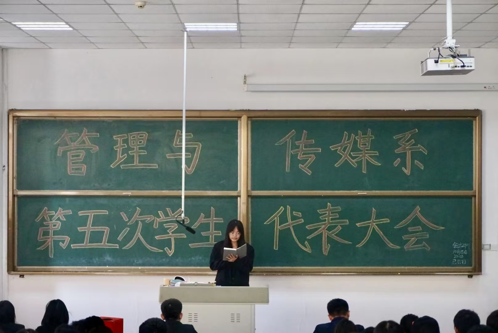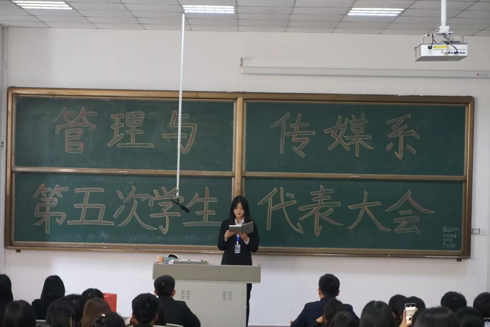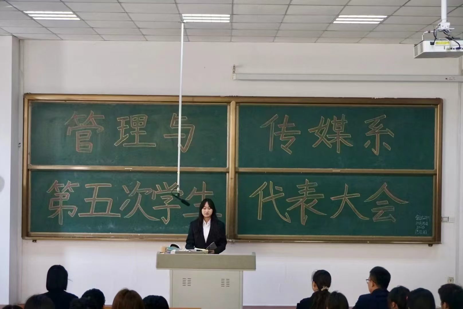 管理与传媒系第五次学生代表大会的顺利召开,是我系回顾过去,立足当下,规划未来的重要契机。新一届学生会成员将积极响应本次大会的号召, 坚持以抗美援朝精神为精神支柱,肩负起时代赋予的使命,砥砺前行,奋发向上,不忘初心,争做新时代新青年。相信在新一届主席团的带领下,管理与传媒系学生会以更加饱满的热情投身于接下来的工作中,坚持服务同学的初心,使管理与传媒系更上一 层楼 ,不断为管理与传媒系创造新辉煌!