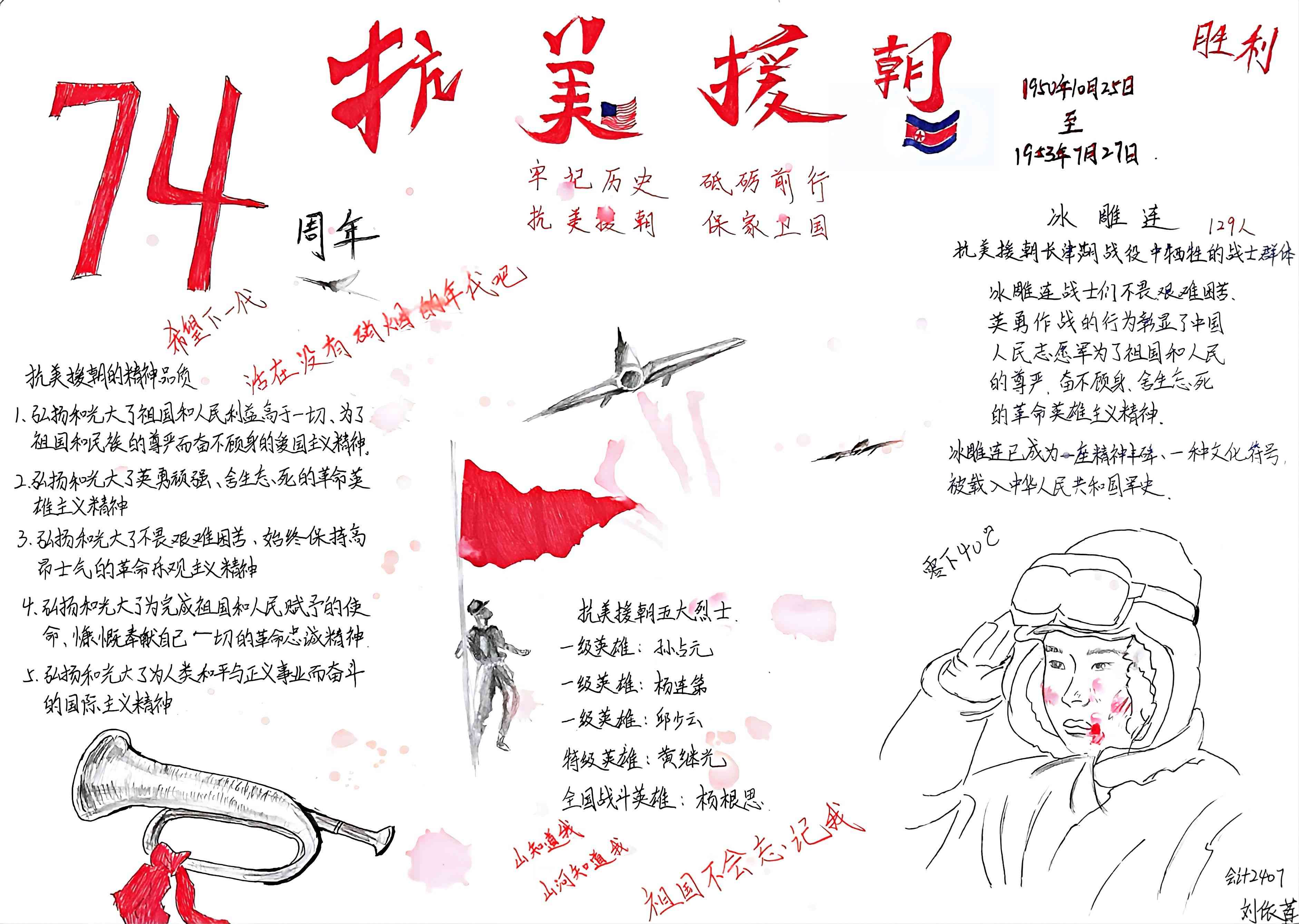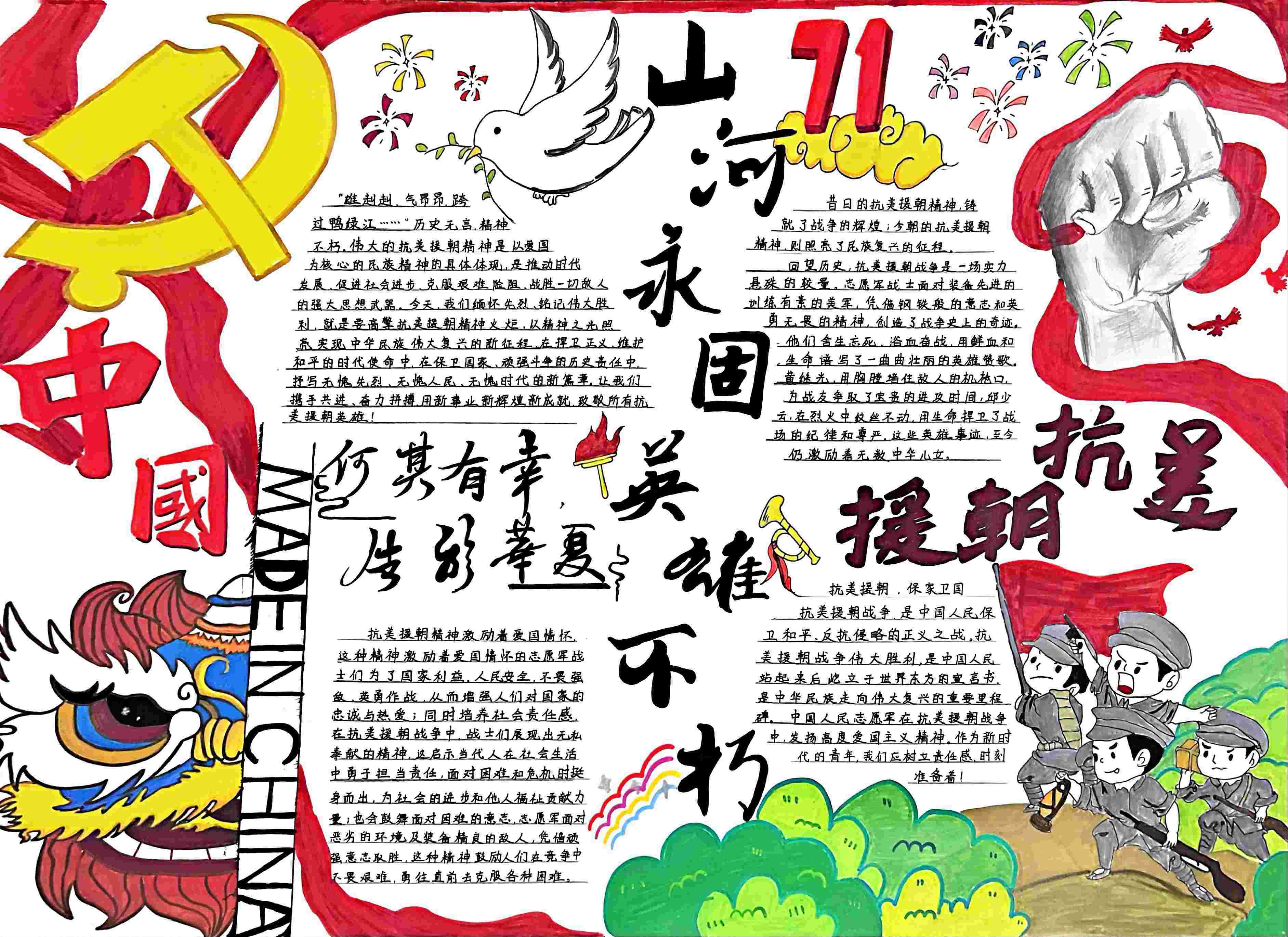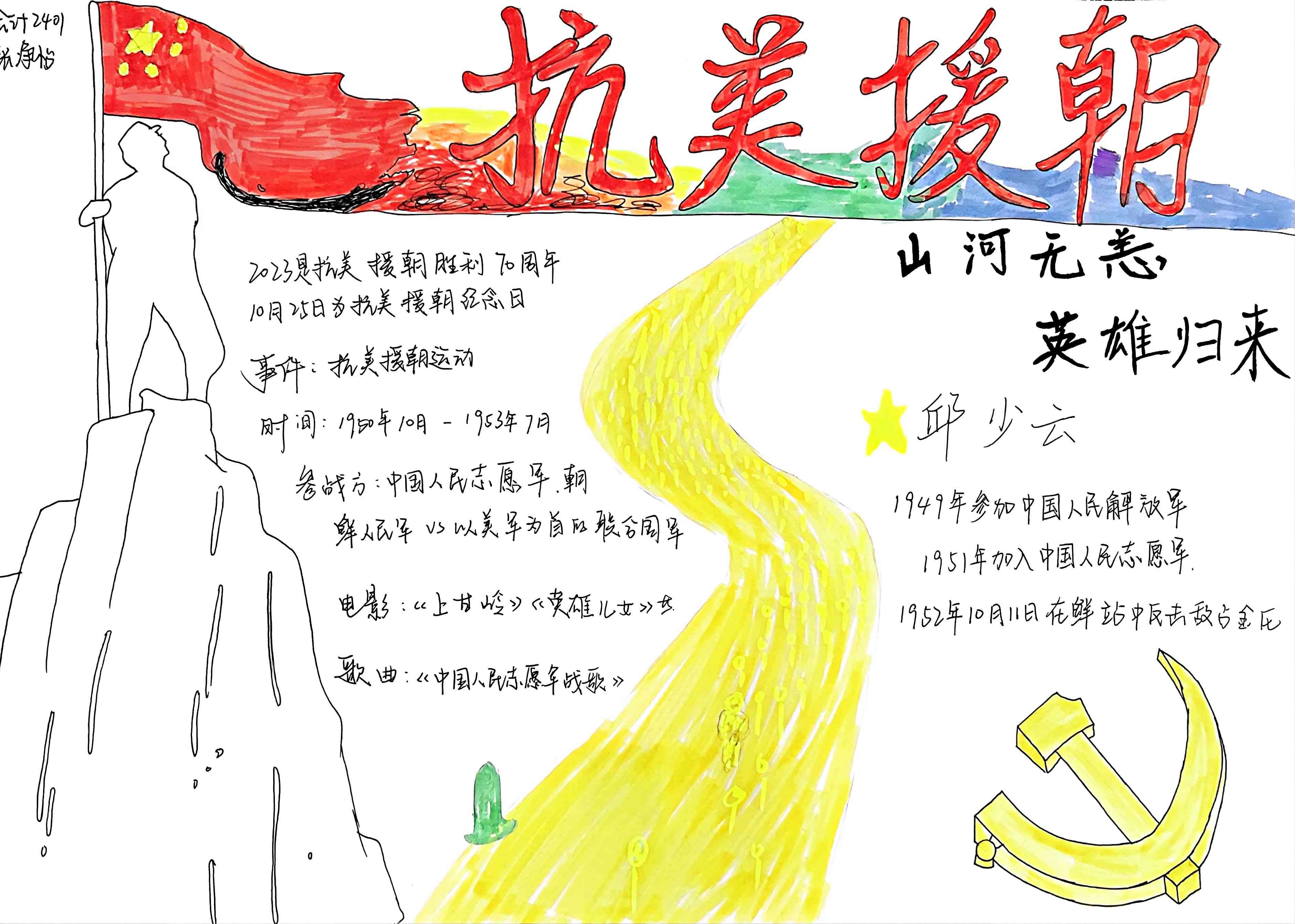 为深化落实《管理与传媒系抗美援朝精神育人的建设方案》,弘扬伟大的抗美援朝精神,引导学生树立崇高的理想信念,厚植爱国主义情怀,管理与传媒系举办“缅怀革命先烈·争做时代新人”抗美援朝主题手抄报线上展演活动。经过一段时间的征集,我们收到了众多优秀的手抄报作品。这些作品充分展现了抗美援朝战争中蕴含的丰富精神内涵和时代价值。接下来,请大家一同参与到投票环节,为你心目中最优秀的手抄报助力!