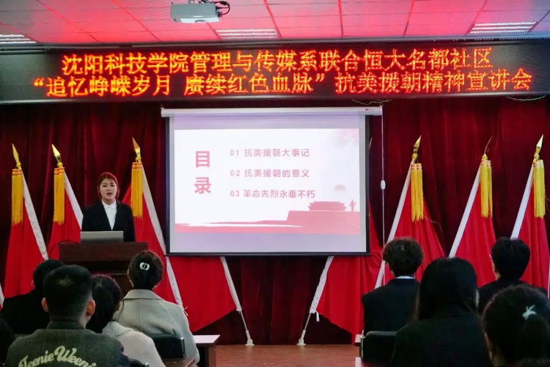 为积极响应习近平总书记提出的“继承先烈遗志,传承红色基因,弘扬优良传统”伟大号召,赓续红色血脉,弘扬伟大的抗美援朝精神,更好地将抗美援朝精神融入社会实践、志愿服务等相关工作中,推动志愿服务融入日常、化作经常。10月23日,9428cn太阳集团联合恒大名都社区开展“追忆峥嵘岁月,赓续红色血脉”抗美援朝精神宣讲会。