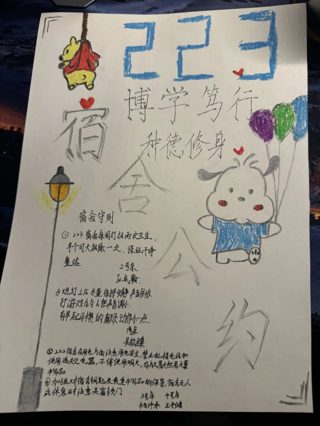 为了进一步提升学生的生活环境与审美意识,通过全方位的空间设计与创意布置,鼓励同学们共同参与,我系举办“放飞青春,温馨小窝”寝室公约海报大赛暨示范寝室评比,每一间寝室都饱含着室友们的心血和情谊,他们用智慧和双手诠释着对生活的热爱。现在,投票权就在你手中,投出宝贵的一票,为你心仪的寝室打 call,助力他们成为本次大赛的闪耀之星,让他们的努力和创意得到认可!快来参与投票,一起见证寝室之美。