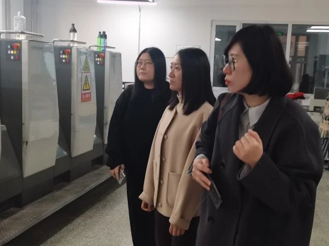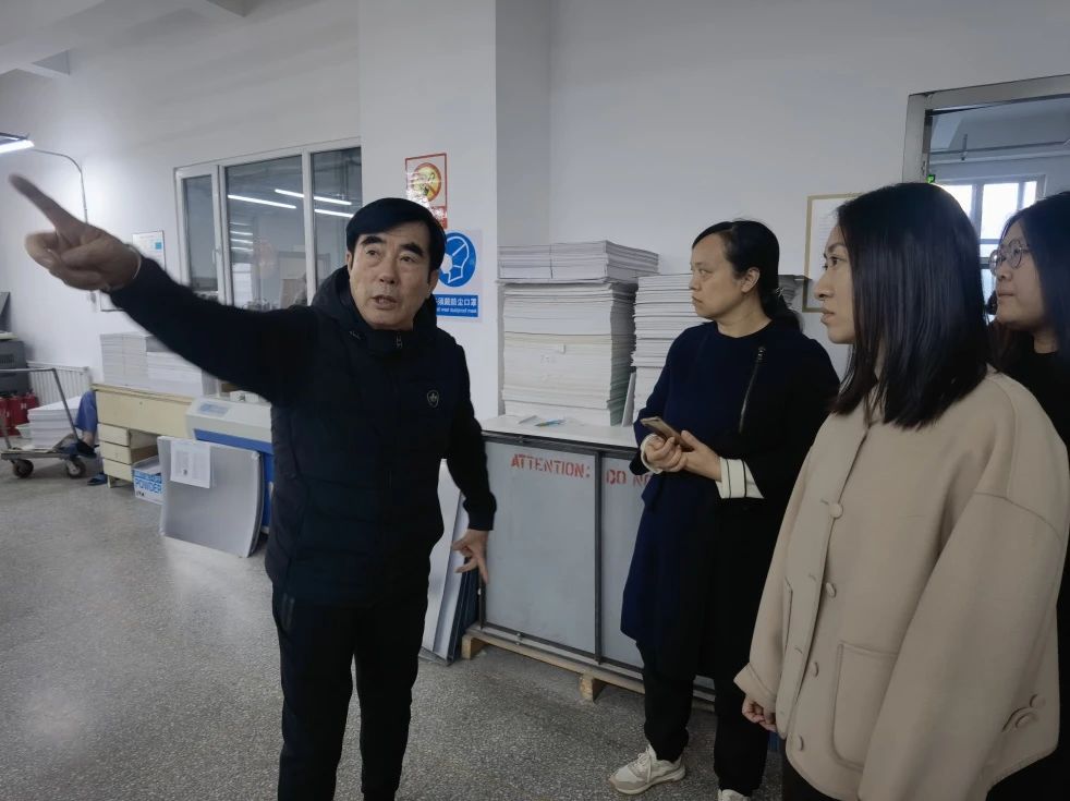 活动当天,沈阳中科印刷有限公司总经理于骙、生产部经理朱永军、排版中心主任赵丽热情接待了管理与传媒系的老师们以及北大方正电子的企方代表们。在于经理的带领下,一行人首先参观了印刷厂的各个车间,从原材料的预处理到印刷机的精准操作,再到成品的后期加工,每一个细节都进行了详尽的实地讲解。参观过程中,老师们深切感受到了现代印刷技术的飞速发展与巨大变革,对印刷出版的基本流程有了更为直观和深入的理解。