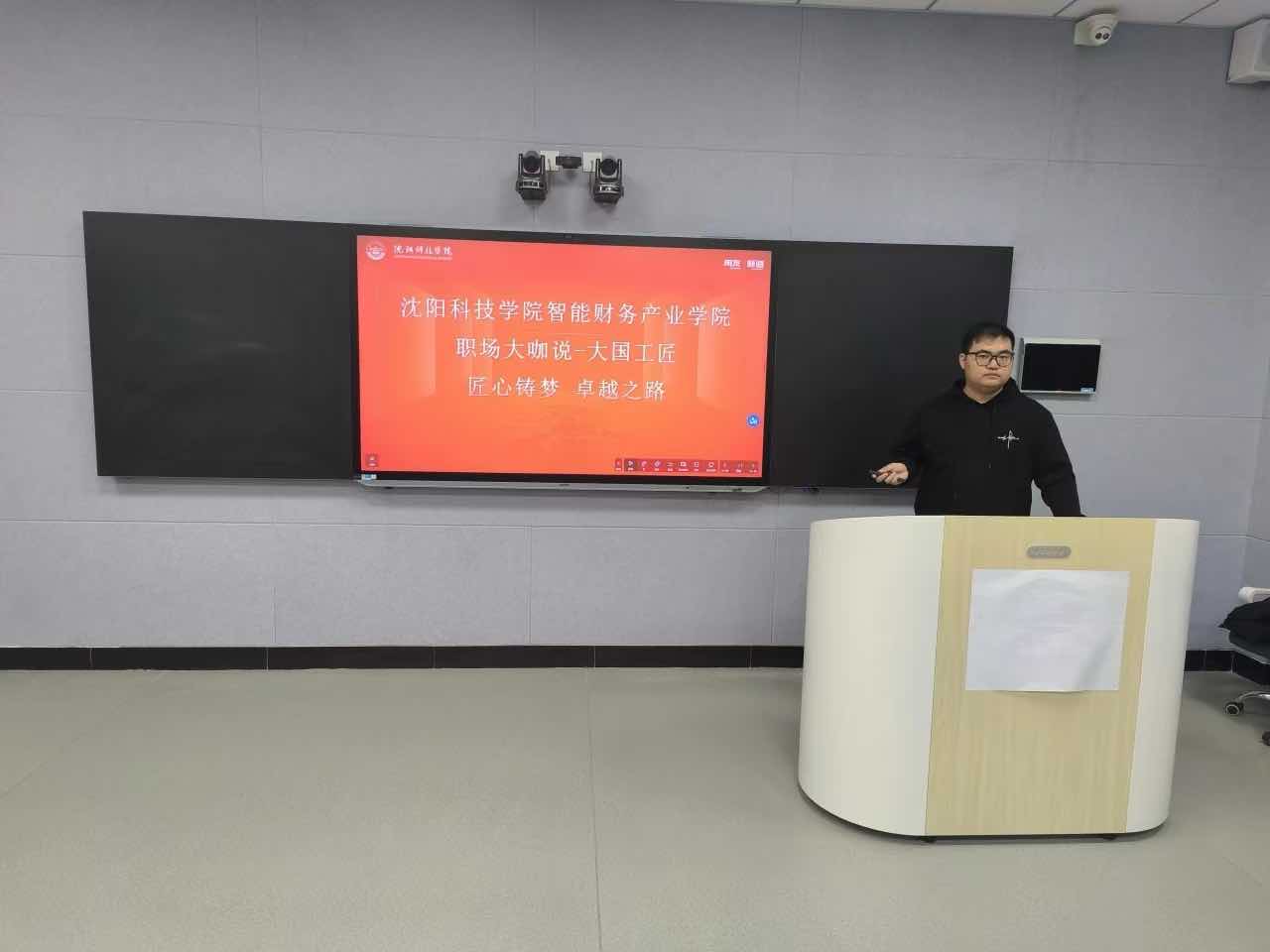 讲座由智能财务产业学院校外导师肖政博主持,主讲老师为全国劳动模范王景峰,讲座以“坚守初心匠心 以劳动报效祖国”为主题,部分专业教师及 2024 级智能财务产业学院全体学生参加。