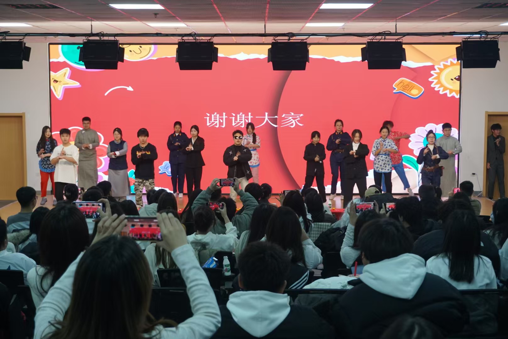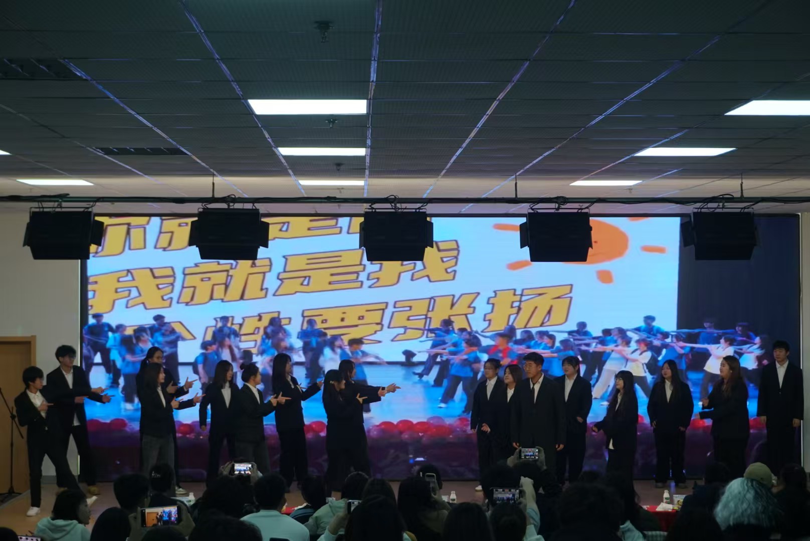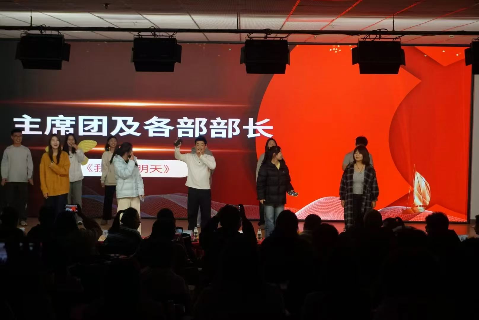 此次文艺晚会通过管理与传媒系学生会各部副部长们带来的歌曲《开心往前飞》拉开了序幕,营造欢快氛围的同时展现了学生干部热情与活力的精神风貌。随后各部门都带来了独具创新的节目,有激情四溢的歌唱表演,有创意无限的小品,有青春热情的舞蹈表演,现场观众们全神贯注地欣赏着每一个节目,不时爆发出热烈的掌声和欢笑声。此外,晚会上还准备了游戏环节和抽奖环节,让现场的气氛更加热烈。晚会的最后,是一场由主席团及各部部长领唱的《我们的明天》。现场的同学们共同演唱,用歌声传递出对未来的美好期许和对青春的热爱,祝愿管理与传媒系的明天越来越好,这是一场青春的狂欢,也是一场梦想的盛宴。