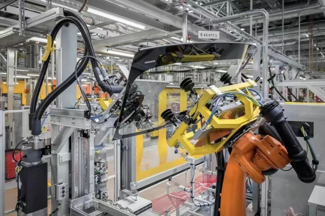同学们穿上工服、戴上护目镜,相继参观了车身车间和冲压车间,了解了现代自动化汽车生产过程和工厂内部汽车制作流水线,数量庞大的橘色机械臂机器人,灵活扭动着身躯,互相精准配合,高效完成零部件的抓取、焊接、卷边等工作,自动化率高达95%。