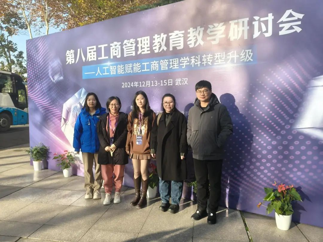 12 月 13-15 日,第八届工商管理教育教学研讨会在武汉举行,此次研讨会由教育部高等学校工商管理类专业教学指导委员会指导,清华大学出版社有限公司主办,以“人工智能赋能工商管理学科转型升级”为主题,会议邀请湖北省教育厅高教处周春艳科长,西交利物浦大学执行校长、教育部工商管理类专业教学指导委员会主任委员席酉民,清华大学出版社党委书记邱显清、经管人文分社社长刘志彬,南开大学商学院院长、国务院学位委员会工商管理学科评议组成员白长虹,学术志总经理宋义平。会议吸引了来自全国 101 所高校的 190 余名教师代表及多位知名专家学者参加,共同探讨了数智时代下工商管理教育的转型和升级,我系教师代表团积极参与了本次会议。与全国各地的工商管理专业的教授、行业专家及企业代表,共同探讨工商管理教育的最新趋势与教学创新实践。