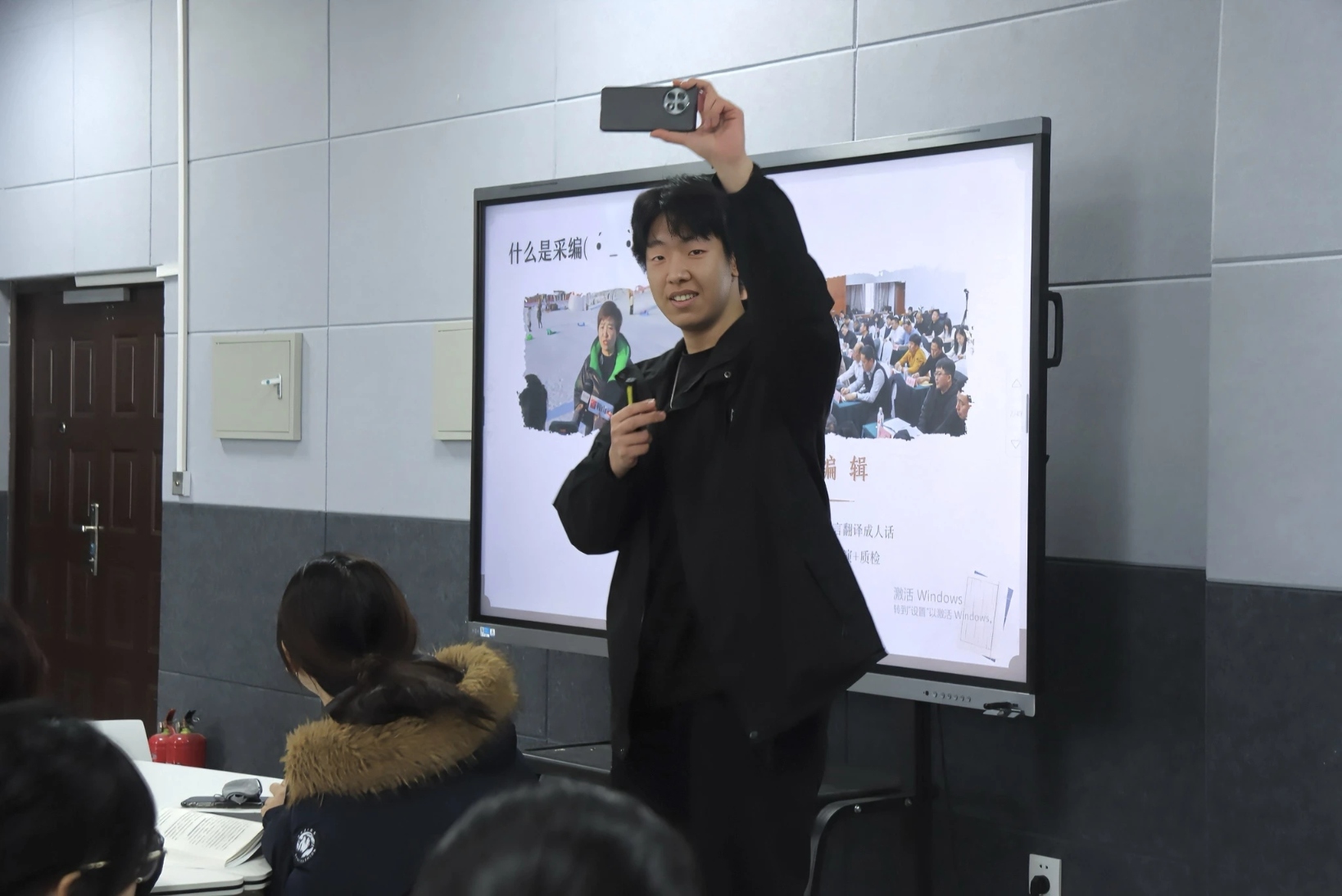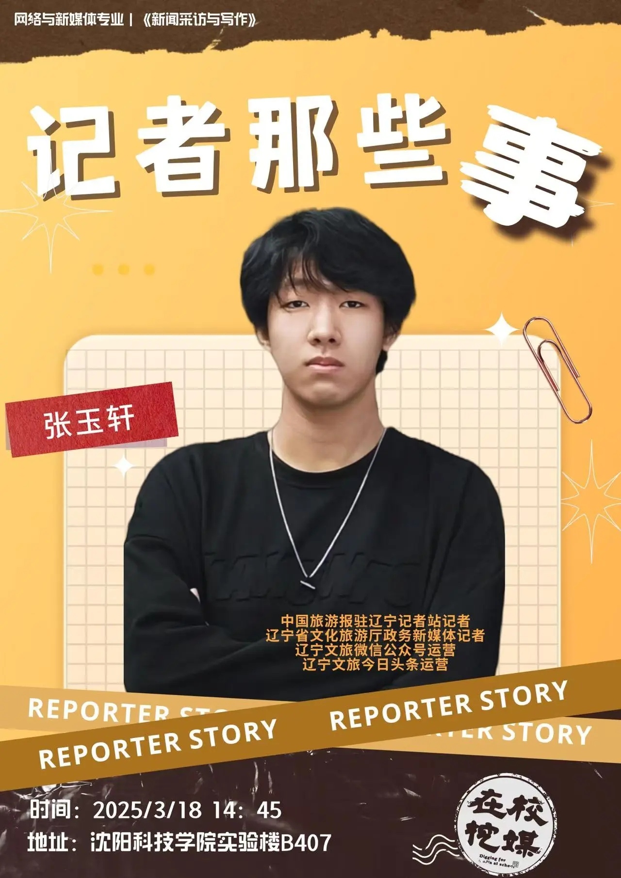 3月18日下午,中国旅游报驻辽宁记者站记者、辽宁省文旅局政务新媒体中心记者张玉轩应邀走进我校讲堂,以《记者那些事》为题展开专题分享。作为智媒时代的新闻实践者,张玉轩通过鲜活的从业经历与生动的案例剖析,揭开了新闻采编的专业面纱,更以“铁肩担道义,妙手著文章”的职业精神,为传媒学子勾勒出记者职业的时代价值与使命担当。