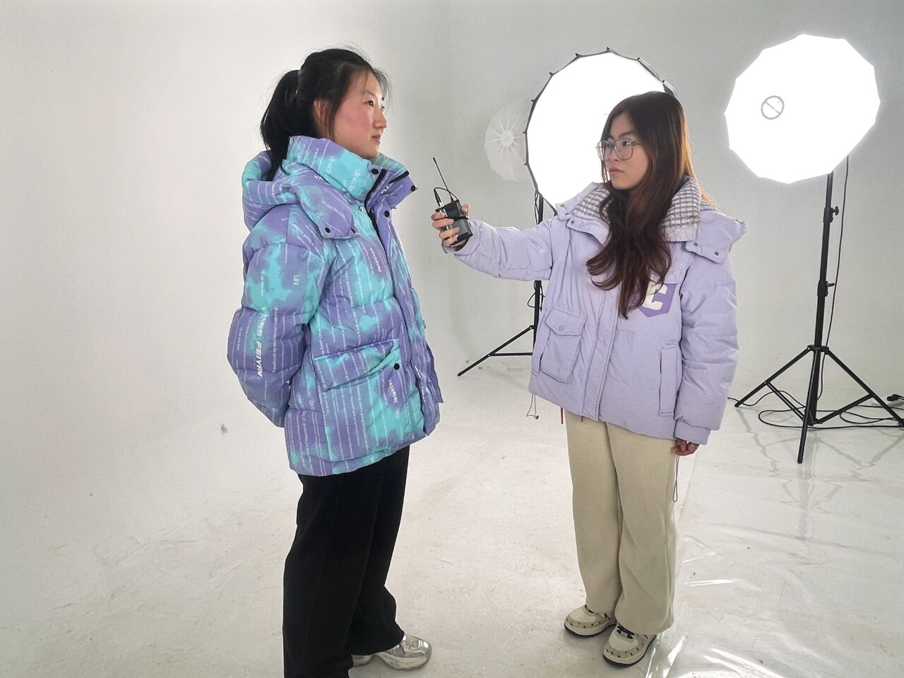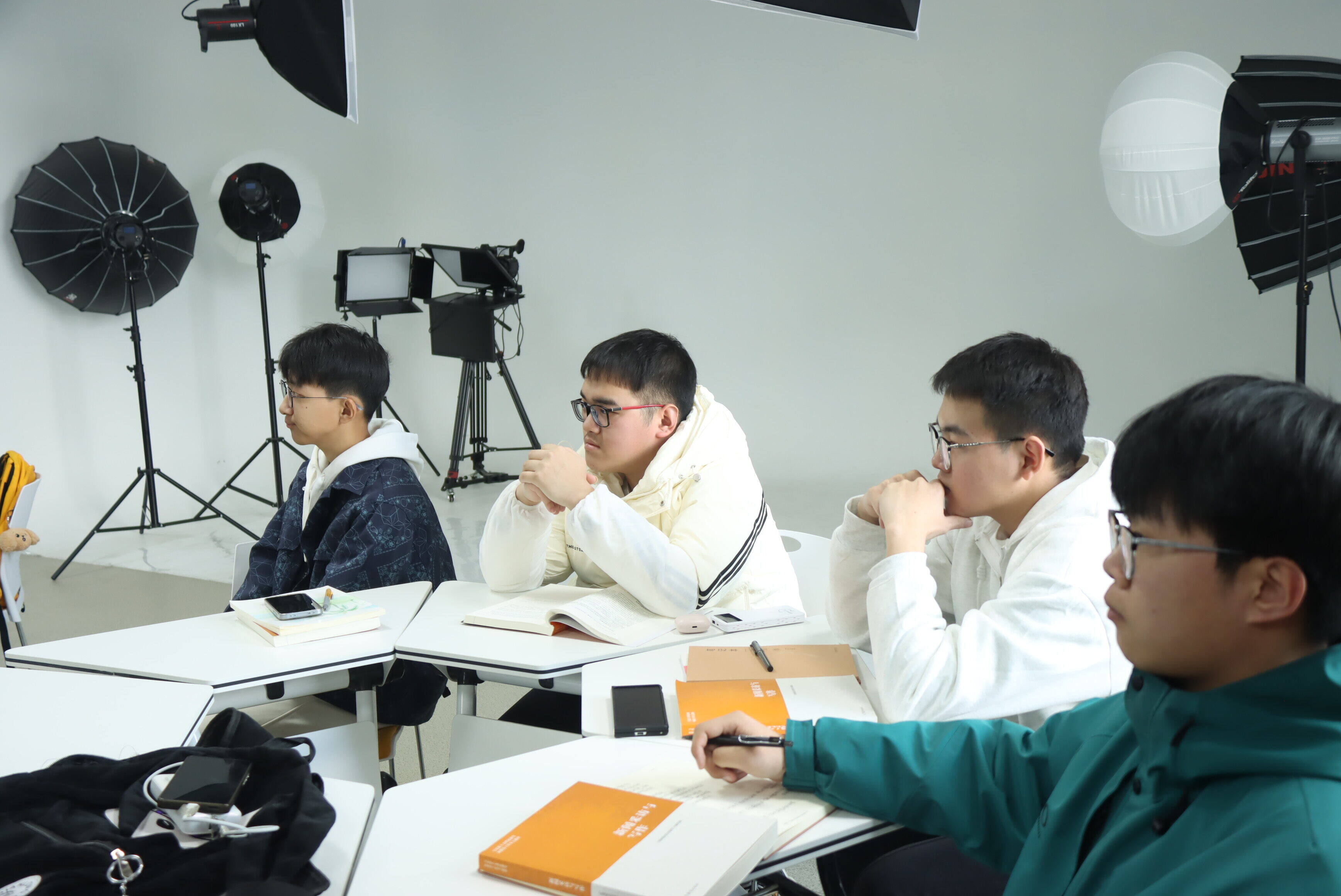 讲座中,张老师随机挑选同学,分别扮演采访者、被采访者、采访助理(递送麦),再分组布置同学开展采访实拍,根据拍摄照片进行现场教学,从光照、角度、时间、背景、位置等五个维度进行全方位点评,并讲授如何利用参考线拍出干净的新闻画面。