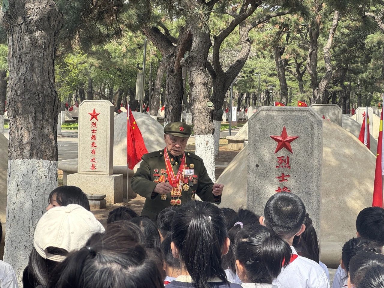 随后,李维波爷爷声情并茂地讲述了抗美援朝战争中的英勇事迹。从志愿军战士们在艰苦卓绝的战斗场景中舍生忘死,到后勤部队在物资匮乏下的坚守,大家无一不都沉浸在那段波澜壮阔的历史中。活动最后,全体参与者怀着沉痛而崇敬的心情,向烈士陵园敬献鲜花并深深鞠躬,表达对先烈们的无尽缅怀与崇高敬意。