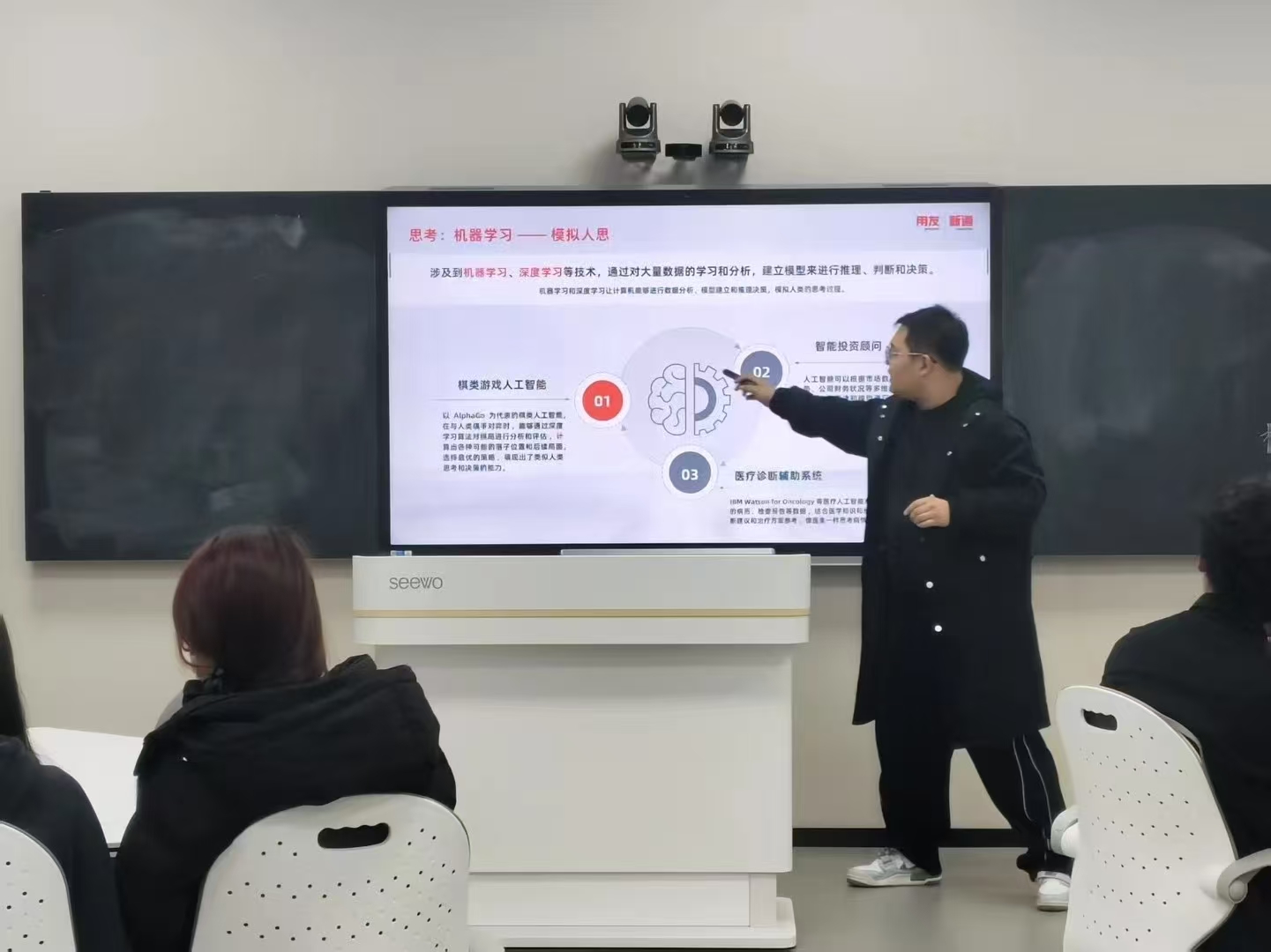 为深化产教融合,引领智能财务人才培养范式革新,9428cn太阳集团古天乐智能财务产业学院于4月1日晚在一教121智慧实训室,举办“学生如何合理运用DeepSeek高效学习”专题讲座。本次讲座特邀新道科技有限公司教学服务经理、智能财务领域专家肖政博担任主讲,2024级智能财务产业学院全体同学到场聆听,现场座无虚席。
