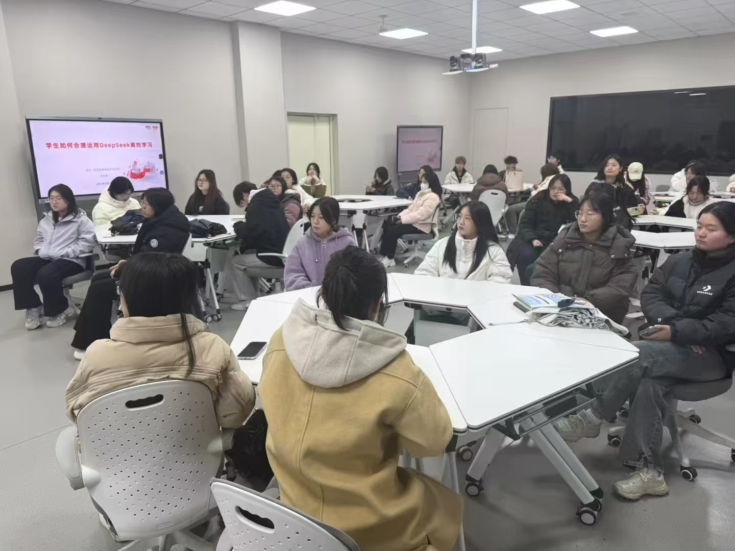 主讲肖政博老师介绍了DeepSeek的基本概念与技术原理,让学生们对这一新兴的大语言模型有了初步认知。随后,从学习、科研、创新实践等多个维度,详细阐述了DeepSeek在学生日常学习生活中的应用场景与实用价值。还结合具体案例,展示了DeepSeek在不同场景下的出色表现,让学生们更直观地感受到它的强大功能。同时,针对学生在使用过程中可能遇到的问题,如信息准确性、使用规范等,给出了专业的建议和解决方案。
