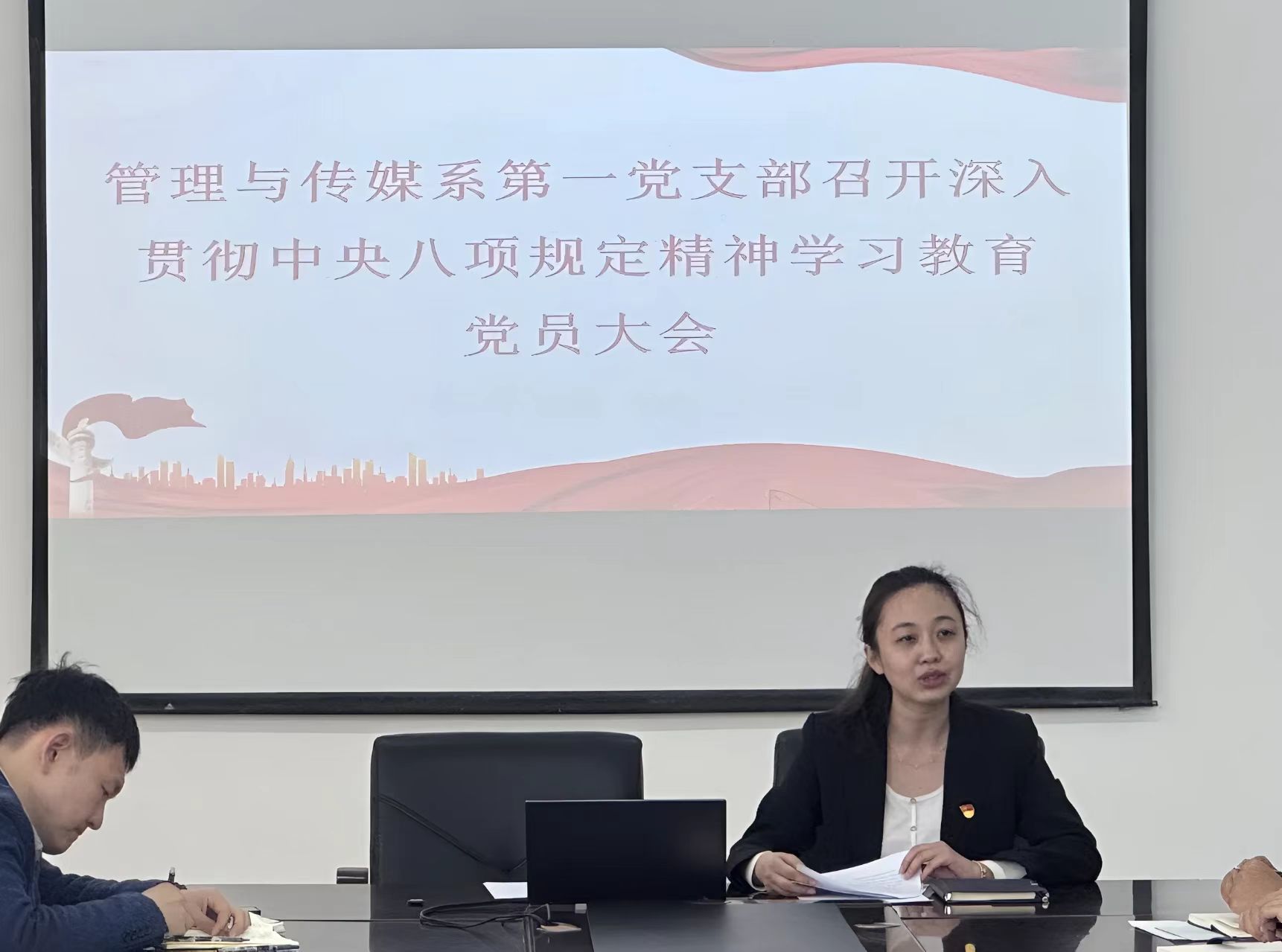 为深入学习贯彻习近平新时代中国特色社会主义思想,深入贯彻中央八项规定精神学习教育,推动党员干部进一步增强纪律意识、强化责任担当。4月25日中午12:00,管理与传媒系第一党支部召开深入贯彻中央八项规定精神学习教育党员大会。本次会议由管理与传媒系第一党支部书记蒋明儒主持,第一党支部全体党员参会。