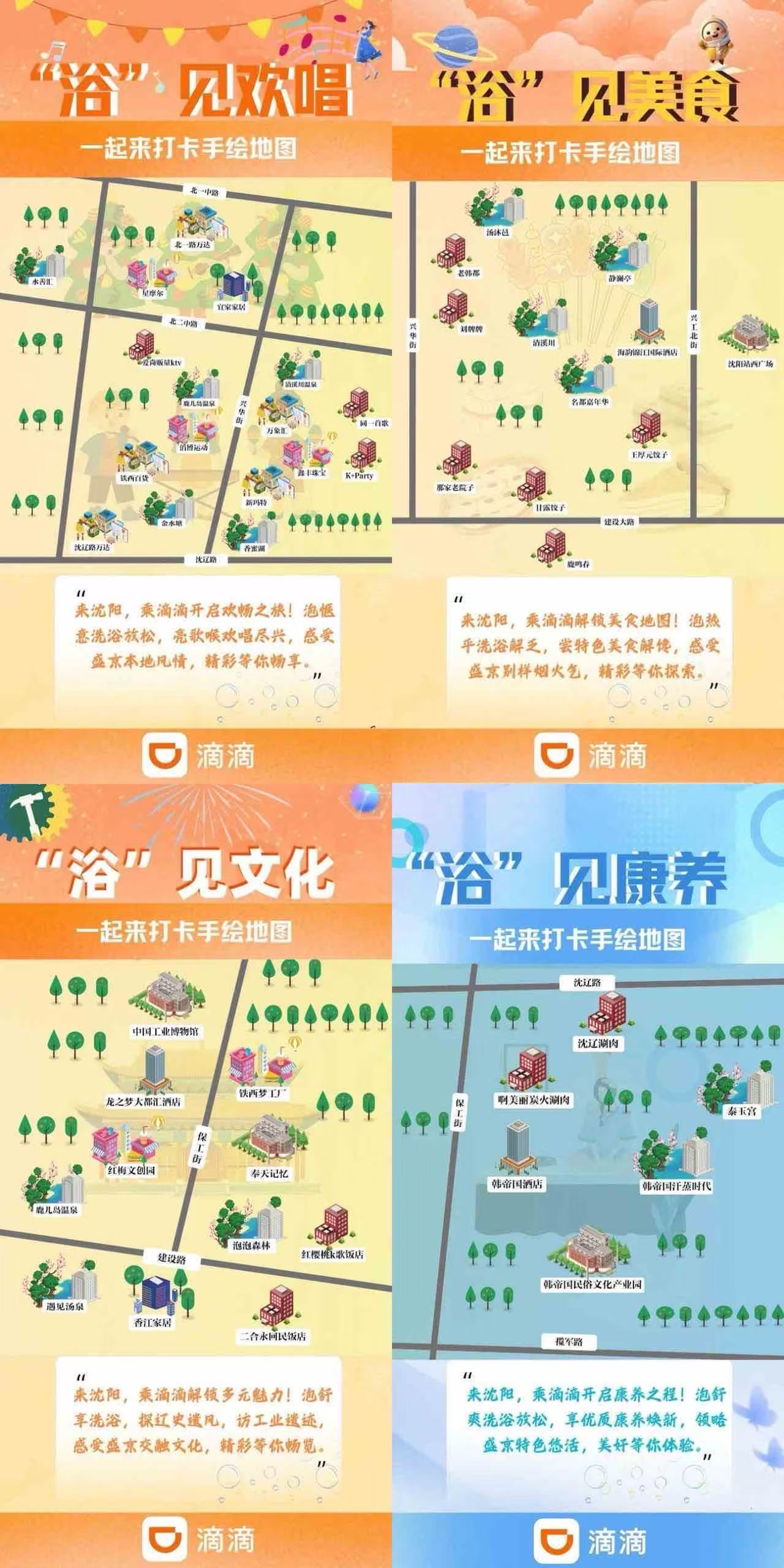 去年寒冬,专业团队与铁西区商务局、滴滴出行携手,参与铁西区首届“暖冬欢洗季”项目。历时 10 天,高效产出“暖冬欢洗季”启动仪式宣传片拍摄与制作、滴滴出行 APP 定制皮肤、五大商圈打卡地图等导览数字产品,用新媒体技术赋能城市品牌建设。此项目不仅成为校地合作的样板,更有效提升了专业团队的快速响应与执行能力。