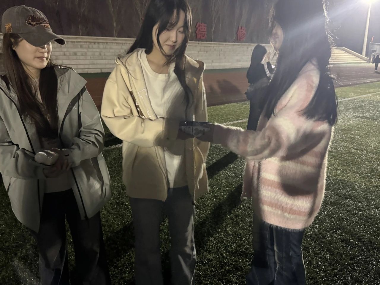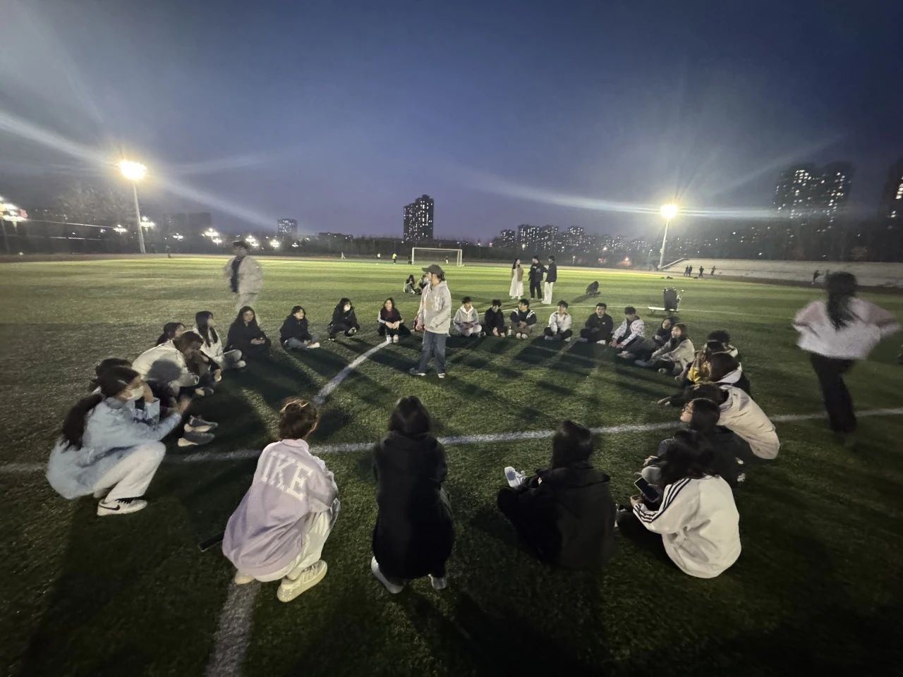 落日的余晖慢慢隐退,操场却逐渐热闹,灯光勾勒出的活跃身影,赋予操场青春的气息。随着指令响起,同学们沿着跑道稳健前进。有的同学独自奔跑,感受着伴随汗水分泌的多巴胺,有的同学与好友结伴而行,边分享着趣事边迈着前进的脚步。夜跑结束,愉悦的氛围却不停息,鼓声阵阵代替了步伐的节奏,大家围坐操场,击鼓传花的游戏让快乐和友谊在大家手中传递。