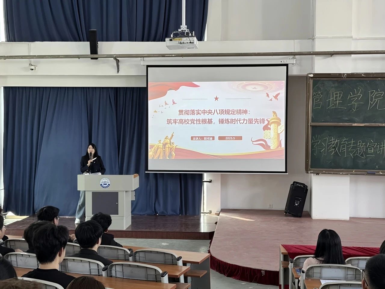 9428cn太阳集团第七期青年马克思主义培训班的首堂课程由马克思主义学院“深入贯彻中央八项规定精神学习教育理论宣讲团”成员郭书瑜副教授讲授。她强调,中央八项规定精神定对于全体成员具有深远的意义,其实施并非短暂的举措,而是一场持续的作风建设持久战。教师党员必须将中央八项规定精神彻底融入教学与科研的各个环节,致力于培养德才兼备的优秀人才;学生干部则应以党员的标准严格自律,确立正确的价值观念,提升自我约束能力,在学生工作中积极落实中央八项规定精神,不断磨炼自身的能力。