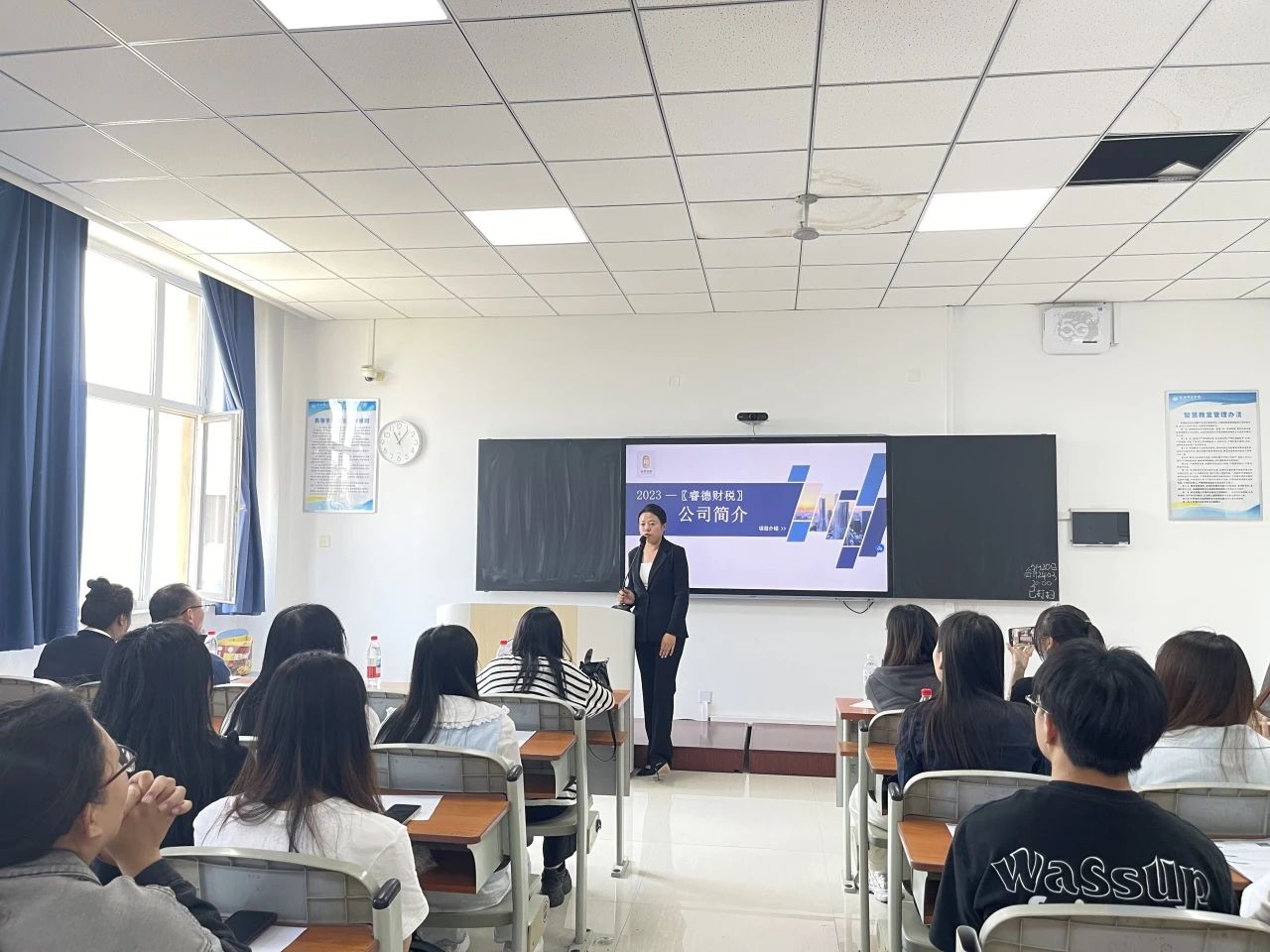 睿德财税服务(辽宁)有限公司详细介绍了本公司为一家代账公司,招聘文字功底好的秘书岗位以及助理会计等岗位,为学生讲解了薪资以及上下班作息时间、公司的规章制度和未来岗位的发展空间。