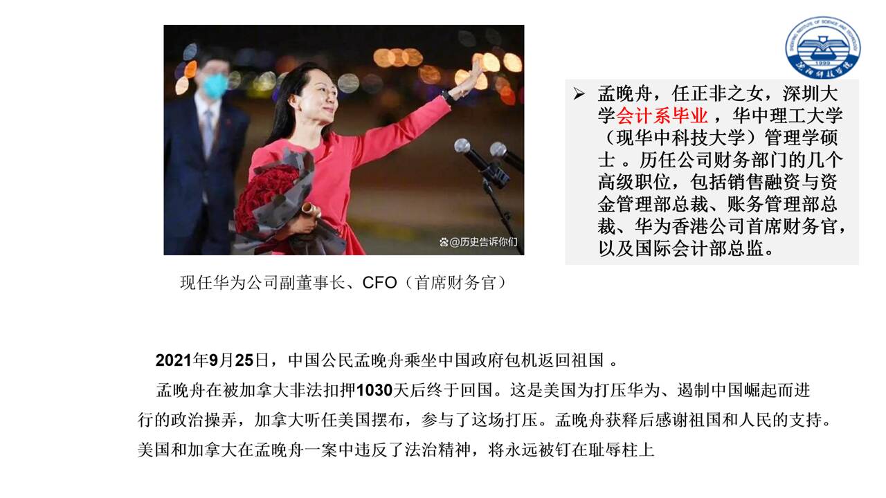 播放一段关于华为发展历程的视频、再说从孟晚舟归国,重点展示华为在面临国际技术封锁和市场竞争压力时,依然坚持自主创新、顽强拼搏的场景。播放结束后,提问学生:“华为为什么能够在困境中不断崛起?其背后有哪些值得我们学习的精神?”引发学生的思考和讨论,从而引出本次课程主题。
