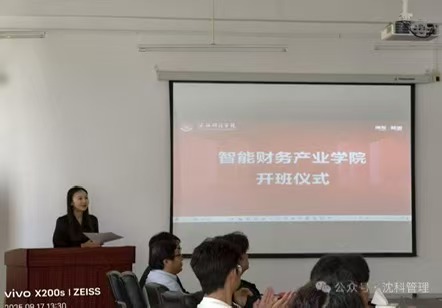 9月17日下午,智能财务产业学院第三届开班仪式隆重举行。学校与企业嘉宾、教师代表及2025级新生齐聚一堂,共同见证这一深化校企协同育人的重要时刻。仪式由姜楠老师主持。