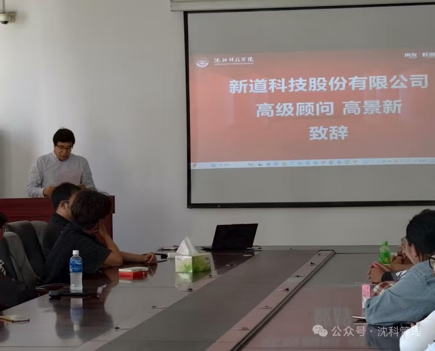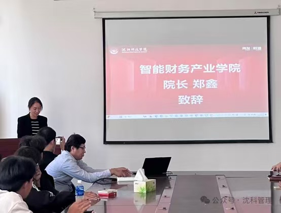 随后,新道科技股份有限公司高级顾问高景新致辞。他提到,随着数字经济的快速发展,企业对具备数据分析、智能系统应用等复合能力的财务人才需求日益迫切。为此,新道科技将结合产业学院的教学计划,引入真实的企业财务案例与前沿的实训平台,让学生在学习过程中就能接触到行业最新的技术工具与业务场景,帮助他们提前适应职场环境,提升解决实际问题的能力。