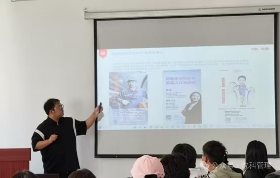 锦旗授予仪式后,企业导师肖政博为新生带来专业解读与第二课堂活动介绍。他详细讲解了智能财务专业的课程体系、实践环节与发展前景,系统介绍了第二课堂的活动设计和育人价值,为新生清晰规划了未来的学习路径与成长方向,帮助他们更快融入产业学院的培养模式。