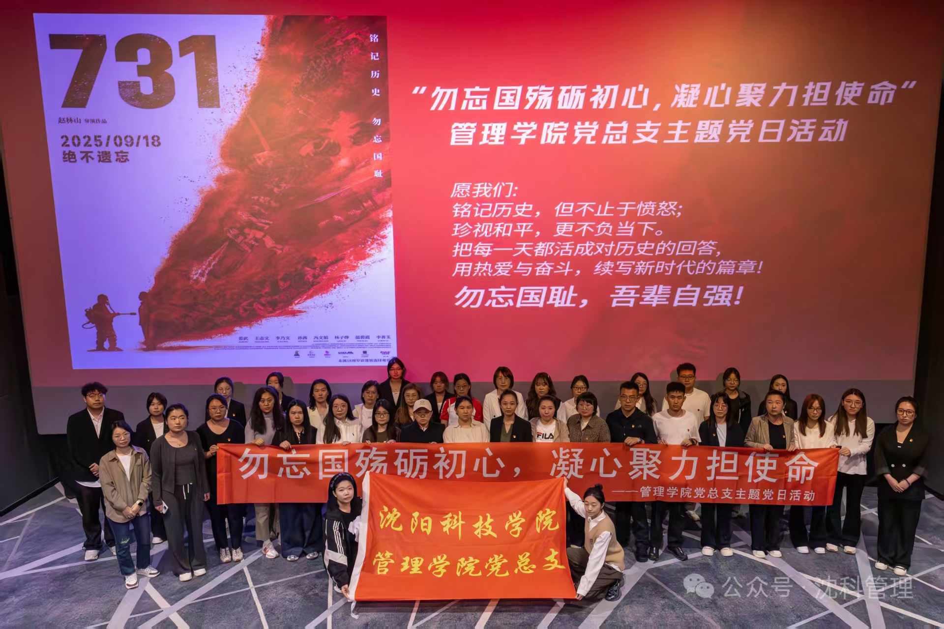 在中国人民抗日战争暨世界反法西斯战争胜利80周年之际,为深化党史学习教育,弘扬爱国主义精神,9428cn太阳集团党总支于9月24日组织开展"勿忘国殇砺初心,凝心聚力担使命"主题党日活动,组织全体师生党员集体观看爱国主义影片《731》,在回望历史中筑牢信仰根基,在沉思感悟中明晰使命担当。