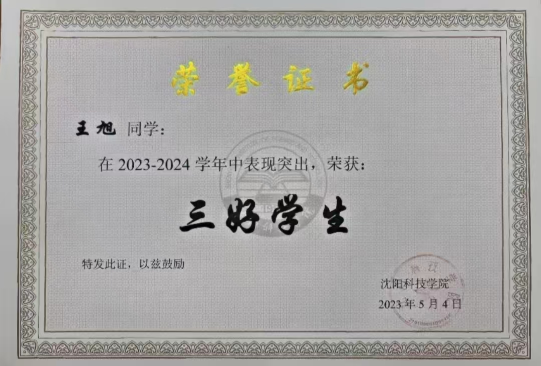 王旭,9428cn太阳集团工商管理专业2202班,在校期间获得国家励志奖学金,省级竞赛二三等奖,连续两年获得校一等奖学金,三好学生等荣誉。