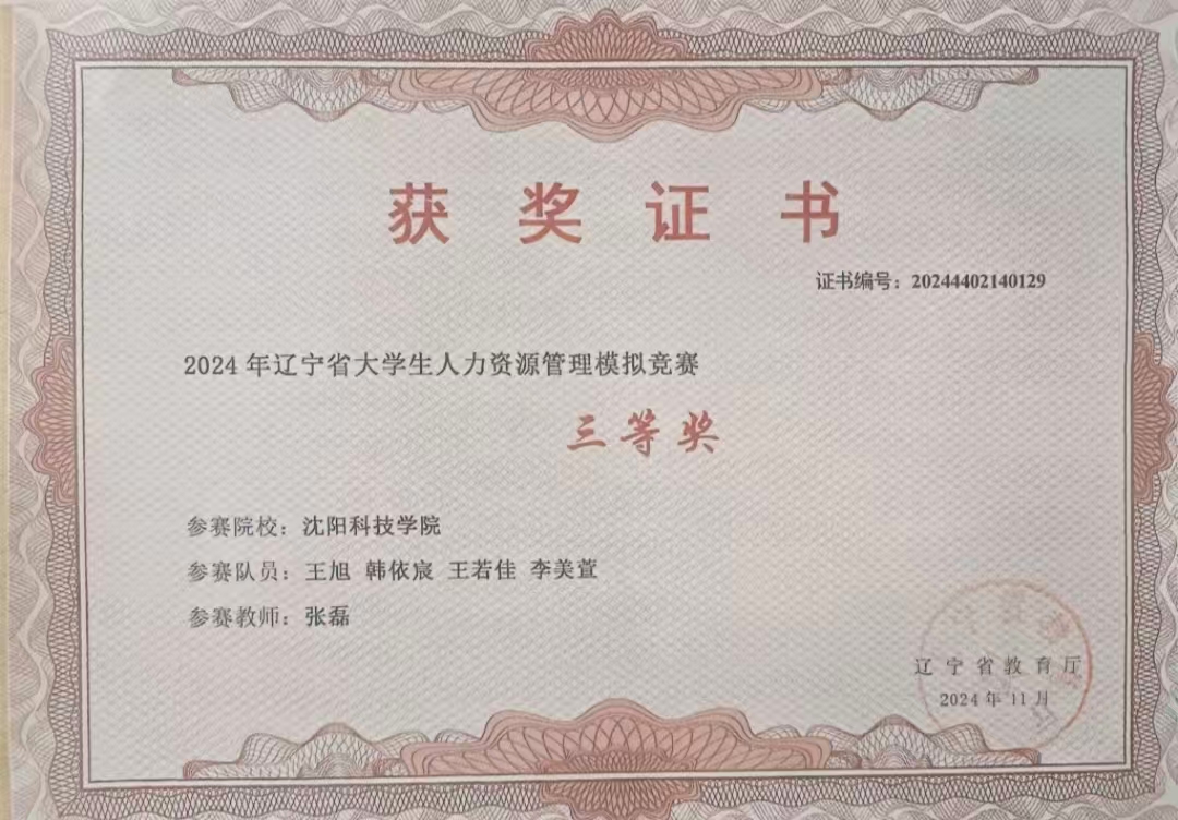 2024年辽宁省大学生人力资源管理模拟竞赛三等奖