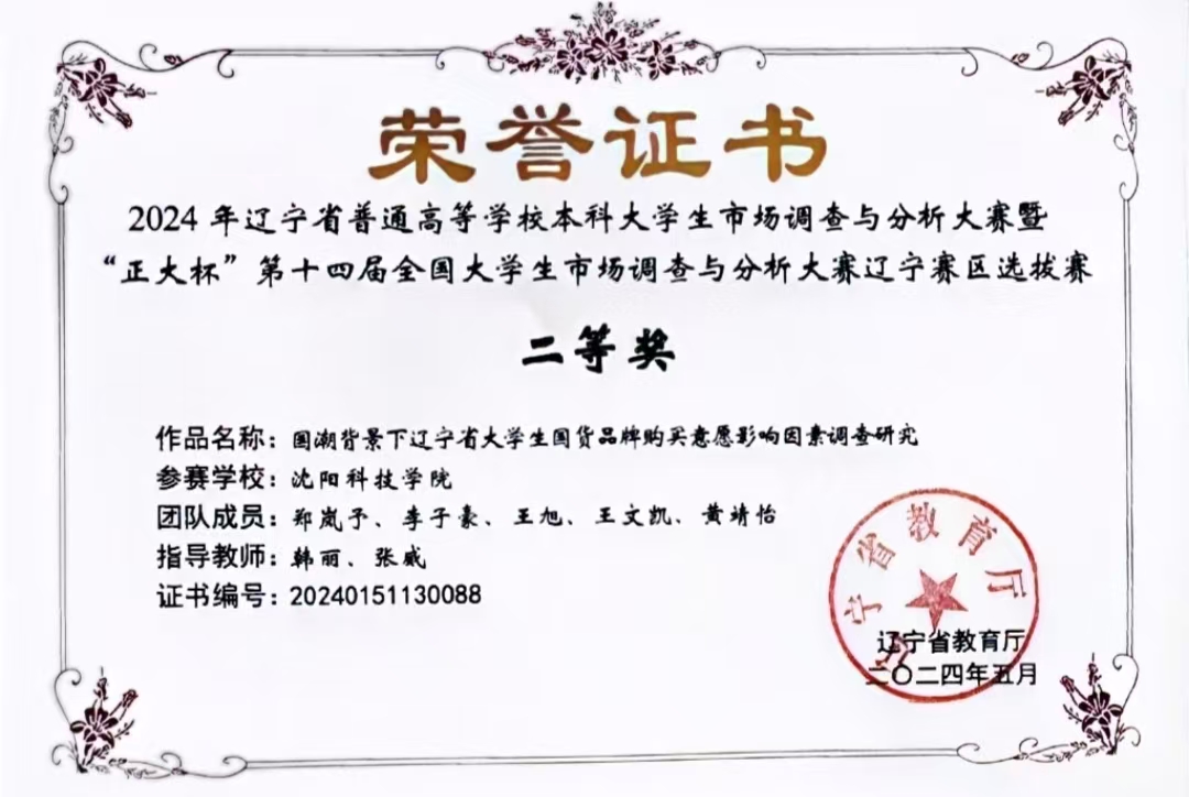 2024年辽宁省大学生市场调研大赛省级二等奖