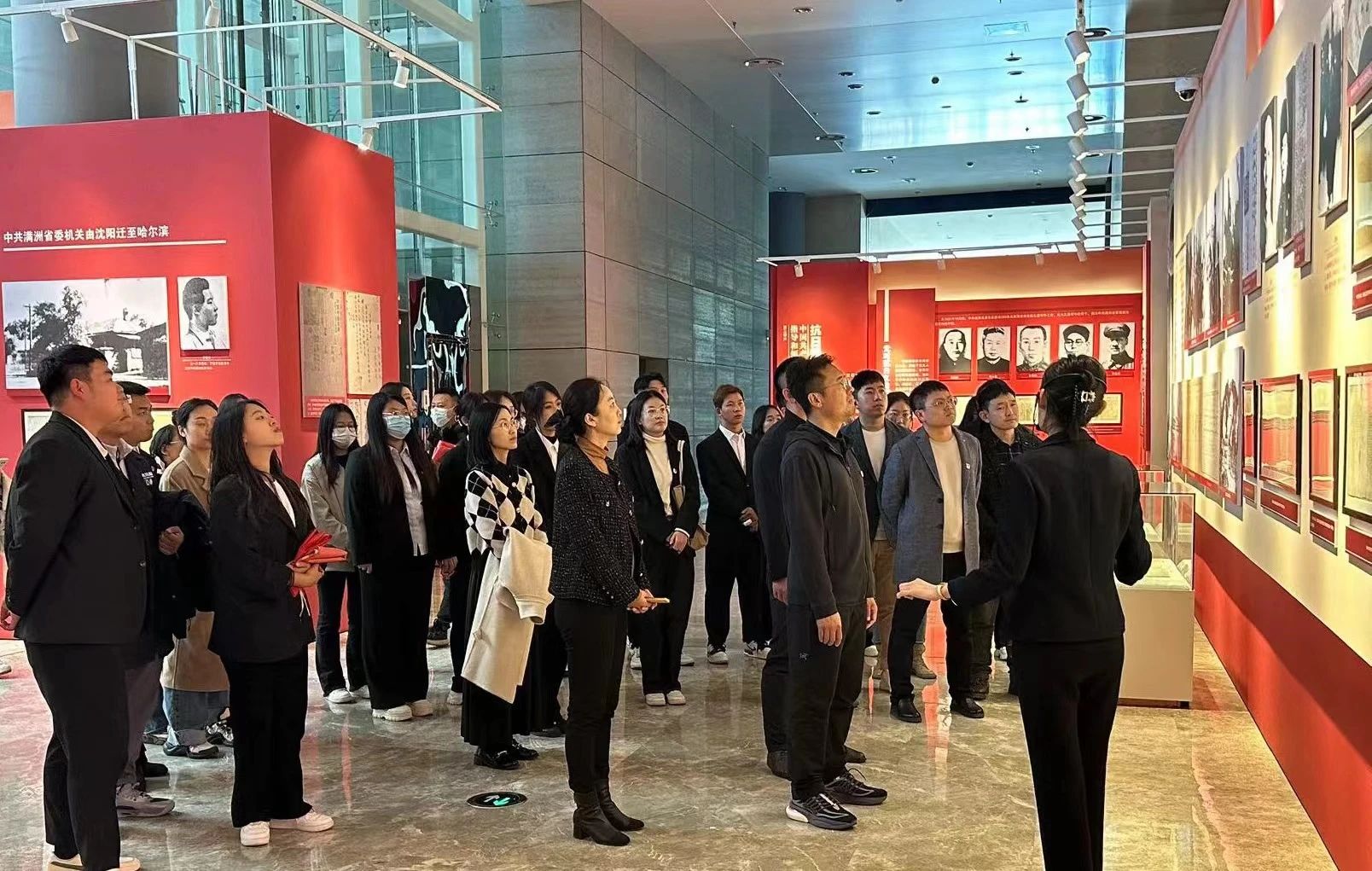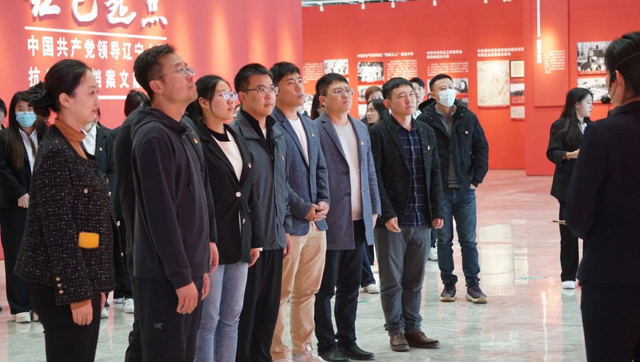 在辽宁省档案馆,党员们参观了“红色起点”中国共产党领导辽宁人民抗日斗争档案文献主题展览。管理与传媒系党总支全体党员通过丰富的档案文献、图片和实物,全面深刻的了解到了中国共产党在“九一八”事变后领导辽宁人民反抗日本侵略的伟大抗日历程。