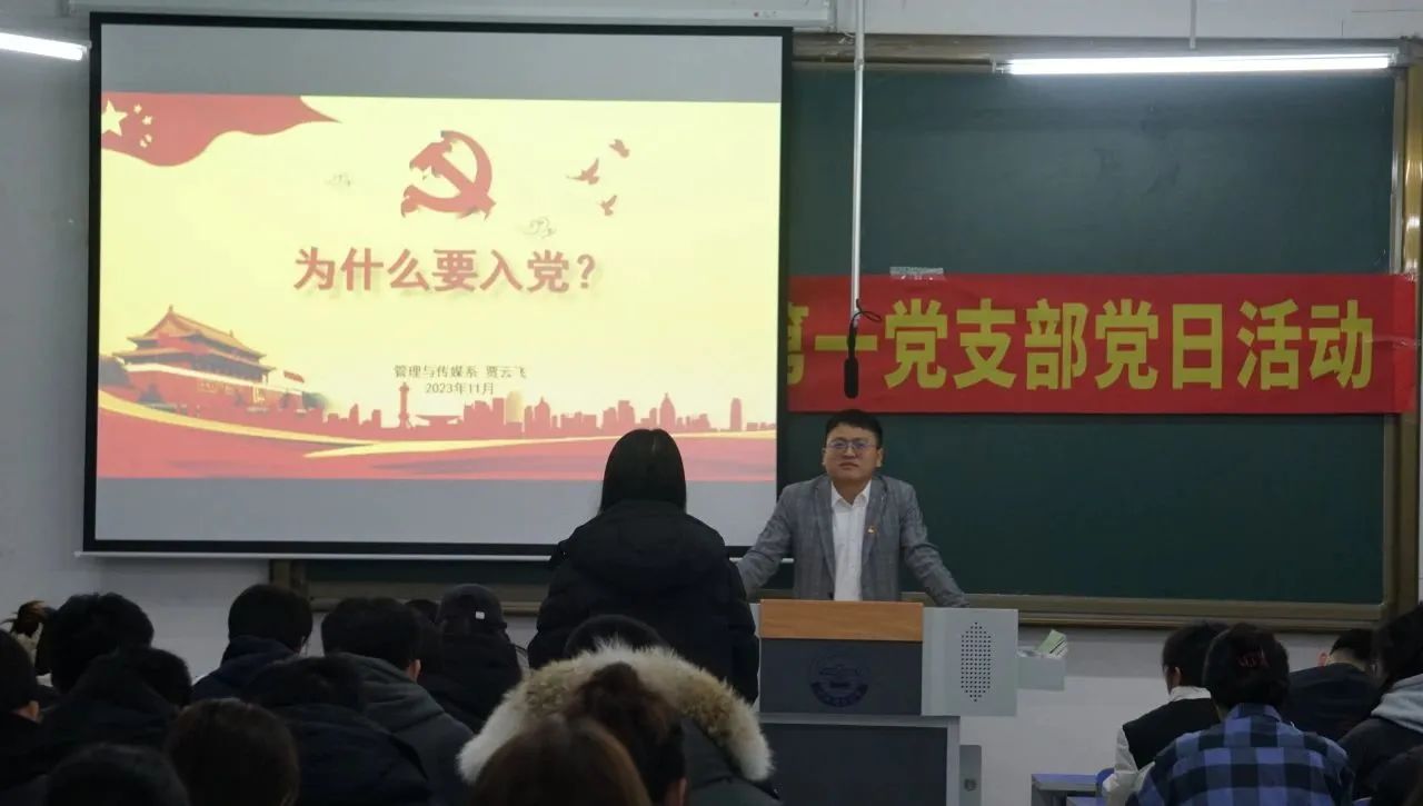 【党建工作】辅导员贾云飞同志为管理与传媒系第一党支部学生党员、积极分子讲授专题党课