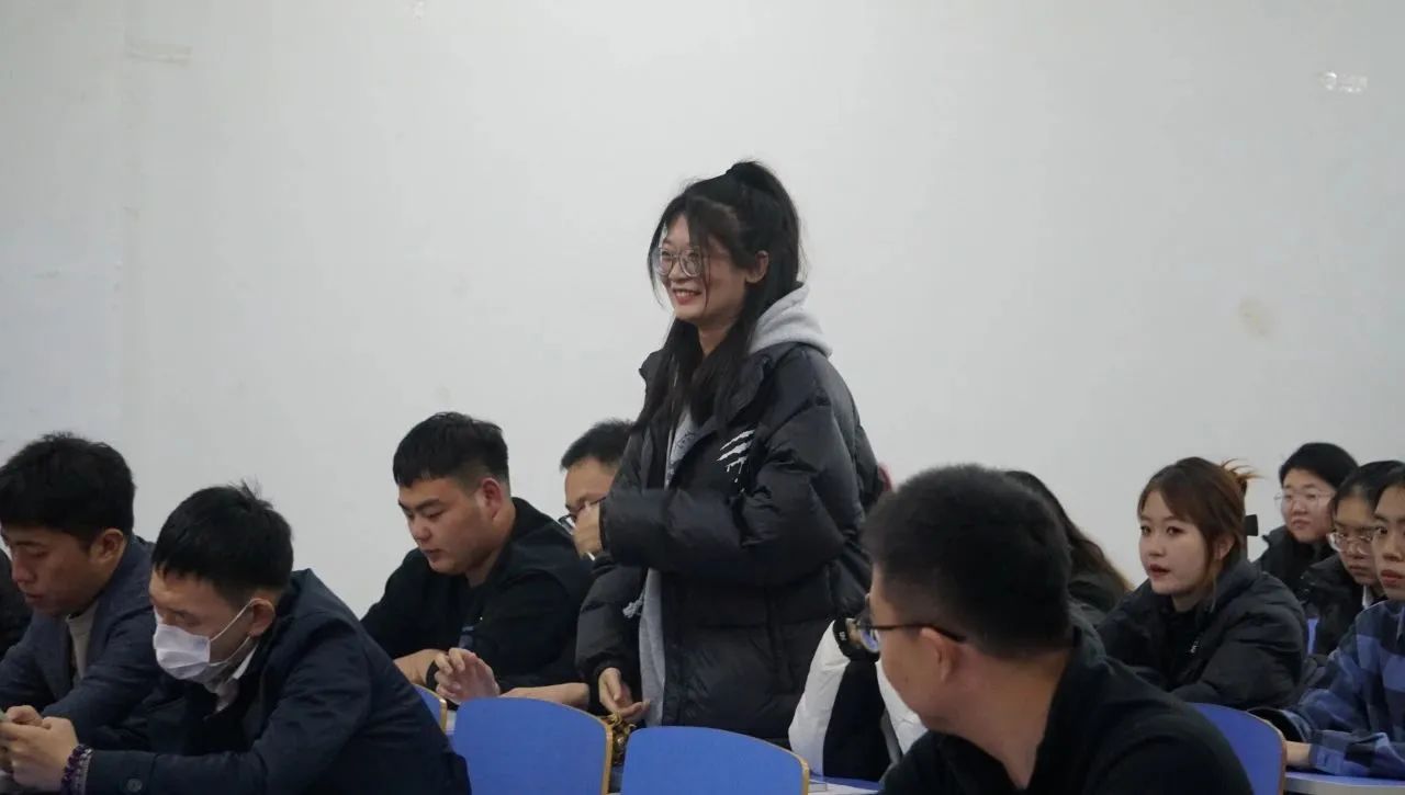贾云飞围绕“为什么要入党?”这个主题,对新时代青年大学生要正确看待入党问题、端正入党动机、明确入党条件、坚定入党信念等进行了深刻剖析。他指出,要充分利用好这个时代背景,主动学习党的理论知识,提高自身思想觉悟,不断增强自身理论学习的能力,筑牢信仰根基,坚定理想信念。学生党员要以身作则、做好表率,入党积极分子要时刻以中共党员的标准来严格要求自己,不断向一名合格的党员看齐。不断增强自身责任感和使命感,增强“四个意识”、坚定“四个自信”、做到“两个维护”,积极担当作为,贡献青春力量。