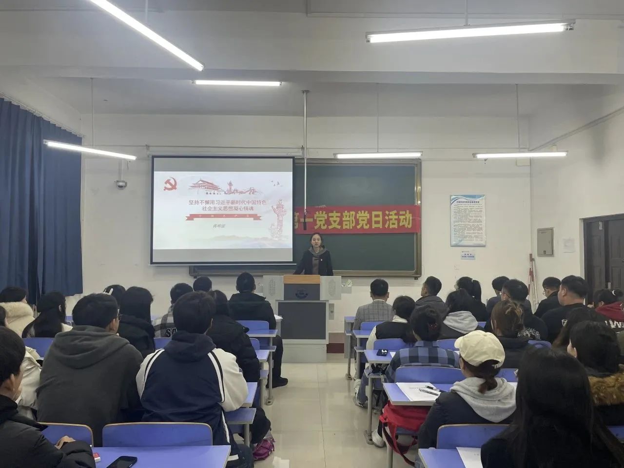 为深入开展学习贯彻习近平新时代中国特色社会主义思想主题教育和党的二十大精神,紧紧围绕“学思想、强党性、重实践、建新功”的总要求,根据学校主题教育工作安排,按照管理与传媒系党总支关于开展学习贯彻习近平新时代中国特色社会主义思想主题教育实施方案的具体内容,11月8日中午,管理与传媒系党总支副书记、第一党支部书记蒋明儒在第二教学楼303教室为第一党支部全体党员讲授专题党课。