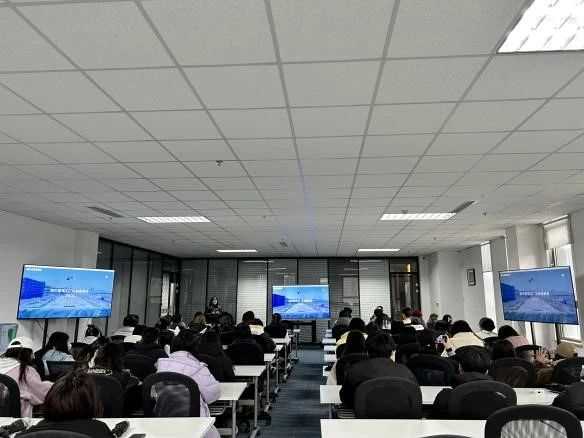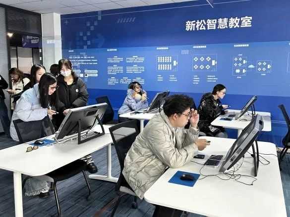 在新松产教融合基地,研发工程师利用云参观模式,在不影响车间工作的情况下,带学生们了解了现代化科技企业的生产流程以及以机器人为主的立体化存放仓库。仓库内部自动化物流系统引发会计专业学生对于高科技企业存货盘点工作的思考。接下来,研发工程师带学生们体验虚拟空间,通过AR技术将虚拟设备与现实场景融合,并进行虚拟操控,让学生们感受现代科技的魅力。