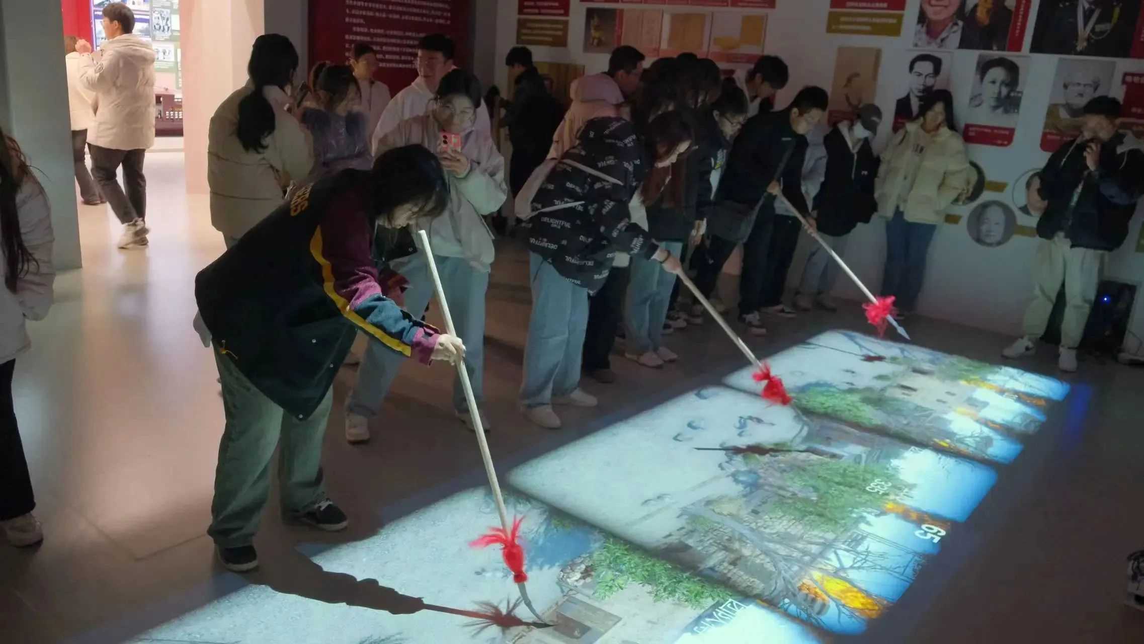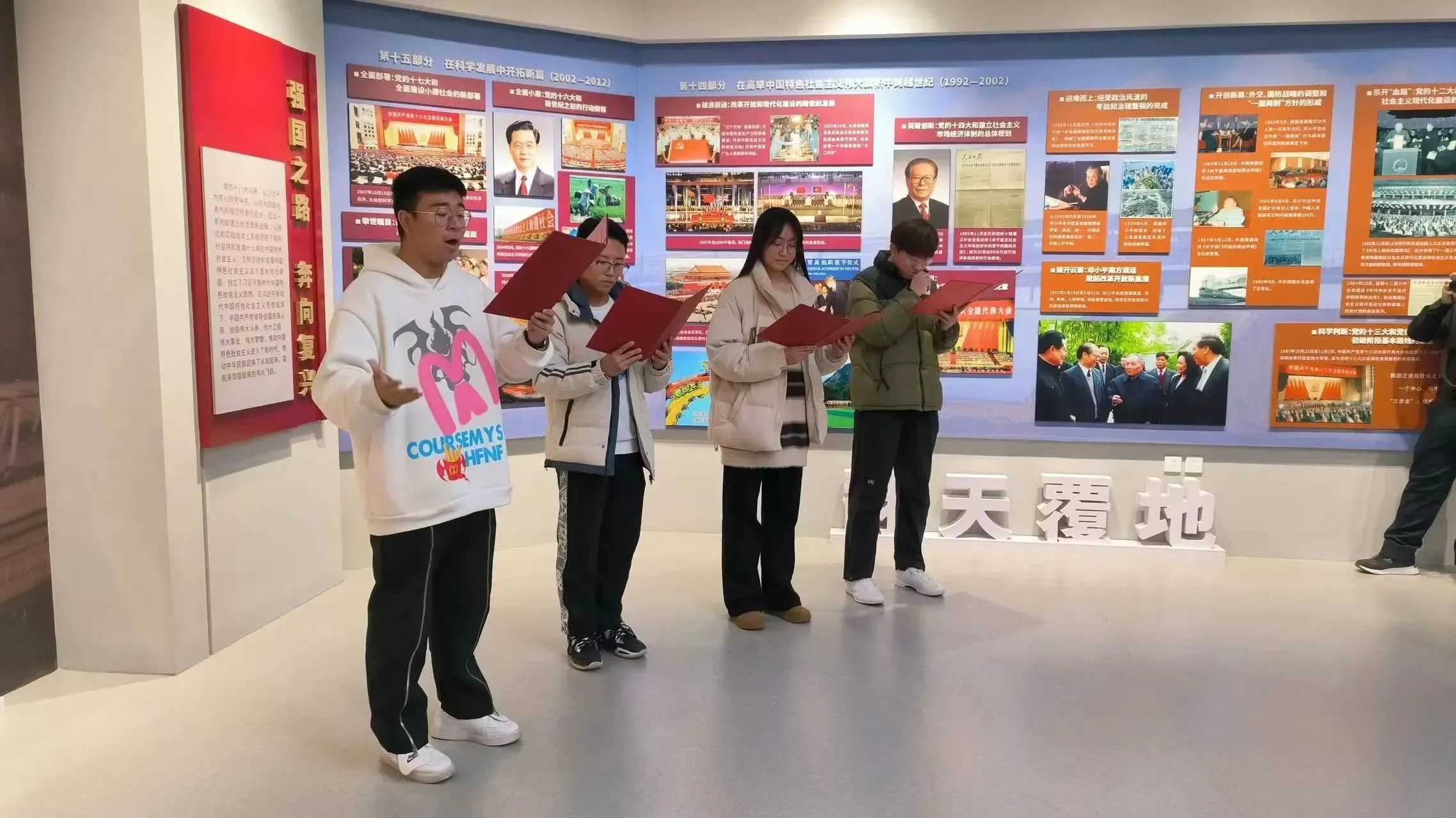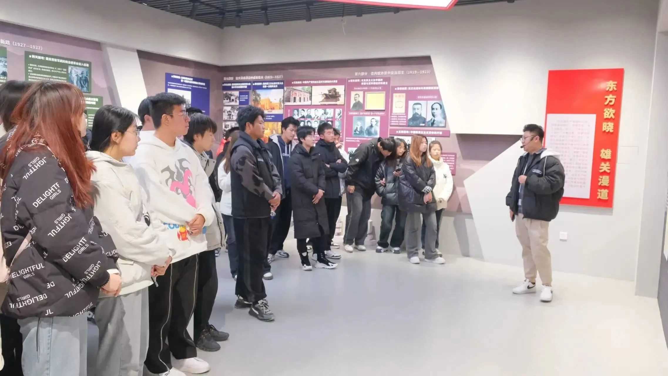 辽宁世纪教育研究院马克思主义理论教育基地各负责人带领学生们参观实践,教育基地包括展览展示区、科技体验区和多功能报告厅。展览展示区让同学们体验了全流程讲解+新形态教学互动体验即虚拟翻书机体验、歌唱祖国诗朗诵、党史互动答题、红缨枪扎鬼子互动体验小游戏等互动教学体验;科技体验区主要展现了智慧互动教学室即红色VR沉浸式体验,通过革命战争历史场景沉浸式互动体验和革命故事虚拟仿真场景沉浸互动,如狼牙山五壮士、红军爬雪山、过草地马克思故居、五四运动等互动体验教学形式;多功能报告厅里展示了图形图像处理、微课制作、视频录制与剪辑等党建宣传片的制作流程。