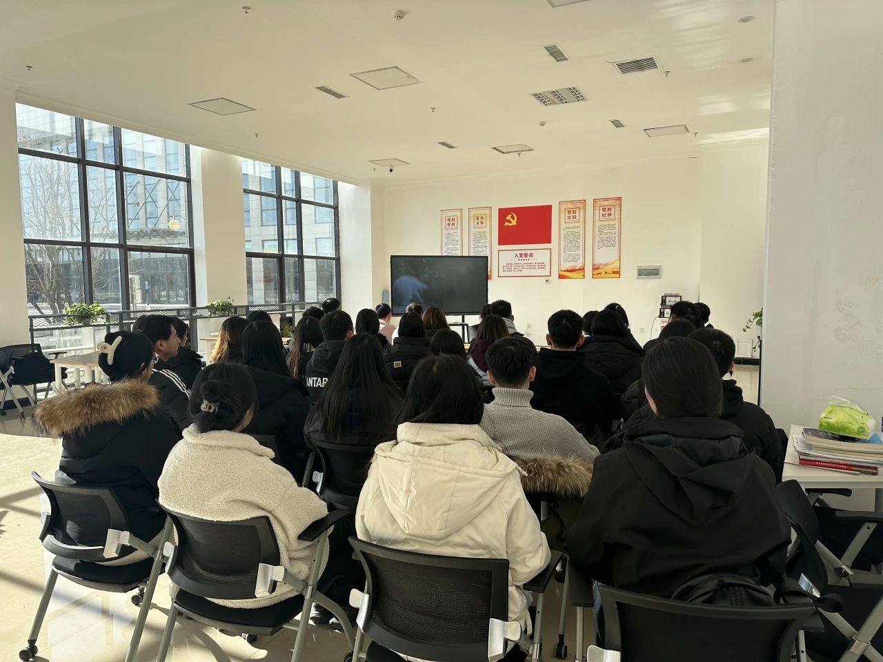 为深入践行习近平生态文明思想,发扬习近平总书记关于防沙治沙和“三北工程的重要讲话和指示批示精神,全面展现辽宁坚决维护国家生态安全的政治担当,11月28日中午,管理与传媒系第一党支部开展主题教育理论学习活动,组织并观看省委宣传部组织有关部门精心拍摄制作的电视纪录片《大漠初心一一彰武治沙群英纪事》,积极引导管理与传媒系广大党员、学生骨干学习先进典型事迹。