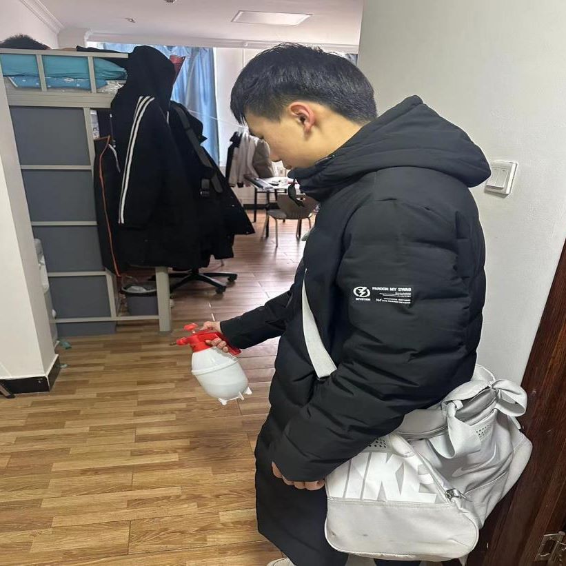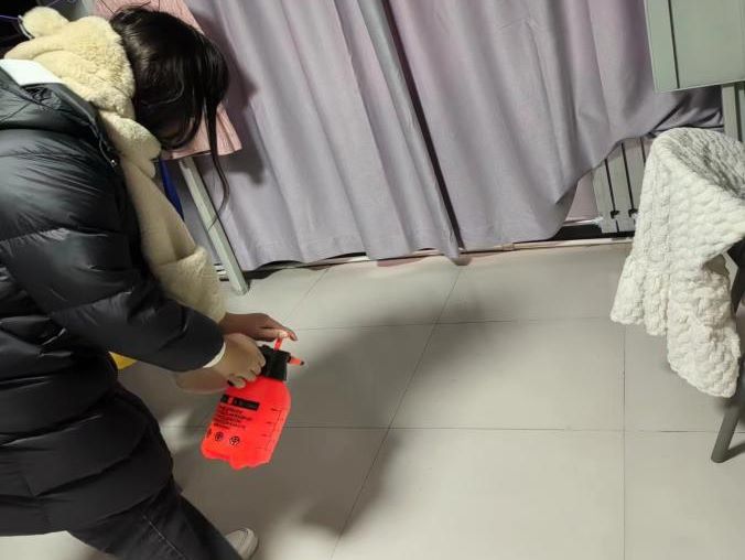 为确保消毒抗菌全方位无死角,管理与传媒系党员志愿者和学生会权益部队寝室内外等重点区域采取喷雾器喷撒消毒剂方式进行消毒,同时对寝室走廊门窗进行了全面消毒消杀。旨在切断病毒传播途径,保障师生健康安全,为恢复正常的寝室秩序提供有力支持。