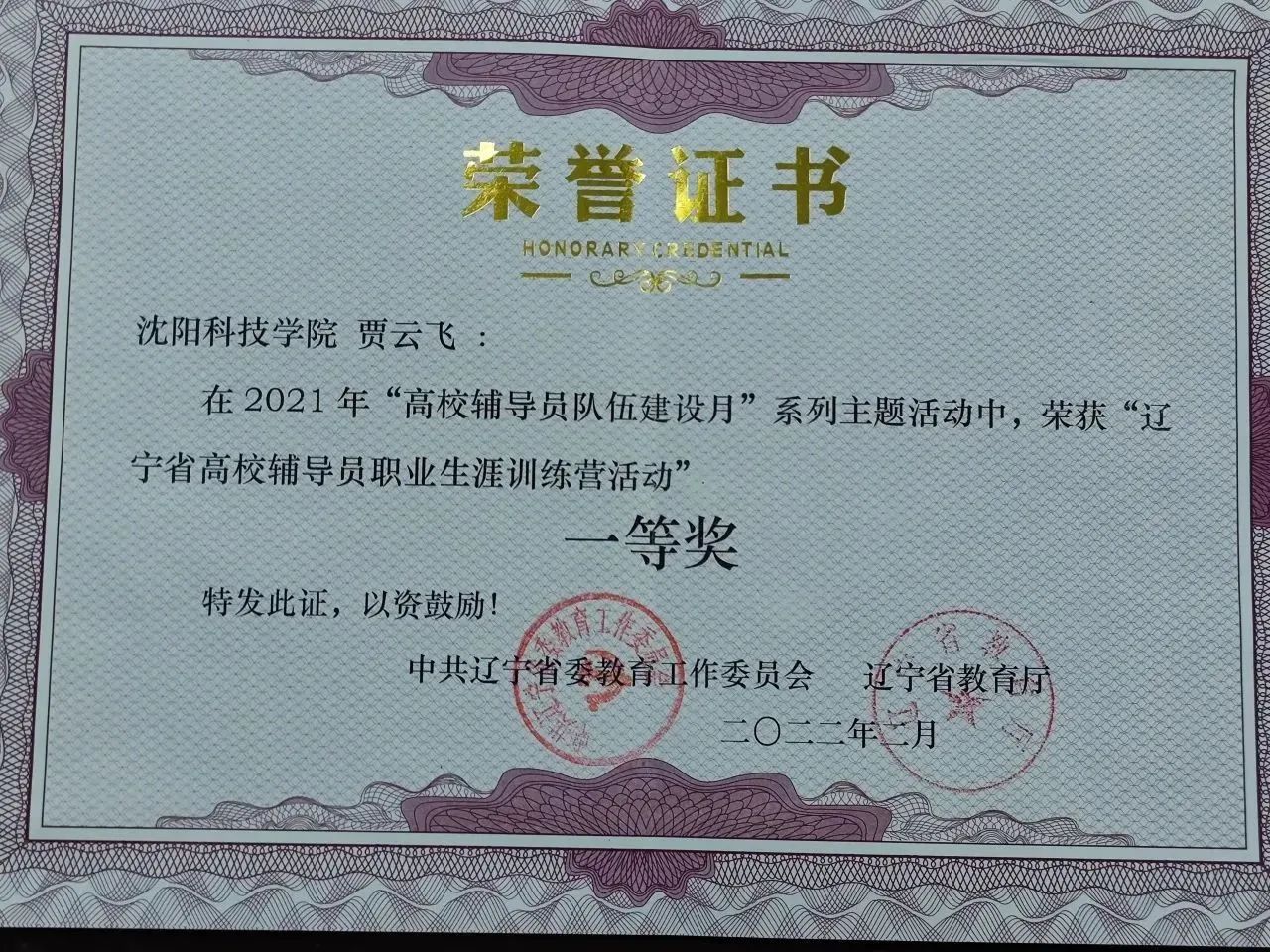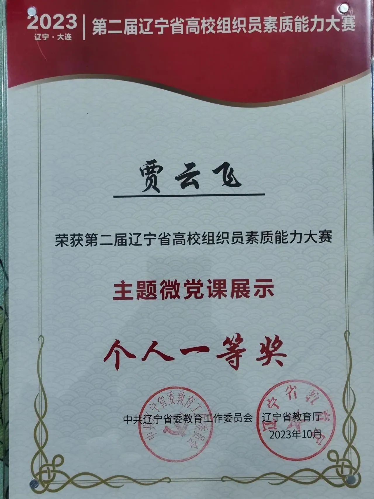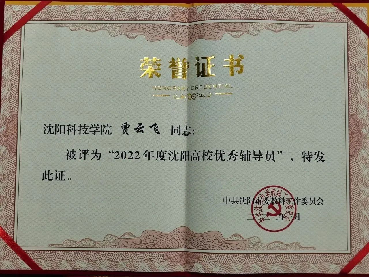 贾云飞,男,汉族,中共党员,现任管理与传媒系2021级学生辅导员,是KAB创业教育讲师,职业生涯规划师,教育部中国大学生在线网站专栏作者,“高校辅导员联盟”专栏作者,辽宁省高校辅导员名师工作室“云说工作室”主持人,曾获“辽宁省高校辅导员年度人物”荣誉称号、沈阳高校优秀辅导员、辽宁省高校辅导员职业生涯训练营活动“一等奖”、辽宁省组织员素质能力大赛微党课“一等奖”、辽宁省高校辅导员优秀工作案例“二等奖”、网络文章二等奖、辽宁省高校辅导员“谈心谈话方法机制规范月”活动优秀案例、第四届全国高校网络教育优秀作品推选展示活动“优秀网文奖”等近二十余项奖项。