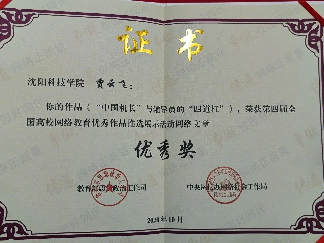 他以线上线下相结合的方式开展思想政治教育,本着学生在哪里,思想政治教育工作就做到哪里的原则,更好的创新大学生思想政治教育形式与方法,在育人工作中取得了实效。如他的网文《中国机长与辅导员的“四道杠”》结合影视作品,为学生答疑解惑,引导学生树立正确价值观,获第四届全国高校网络教育优秀作品推选展示活动优秀网文奖。