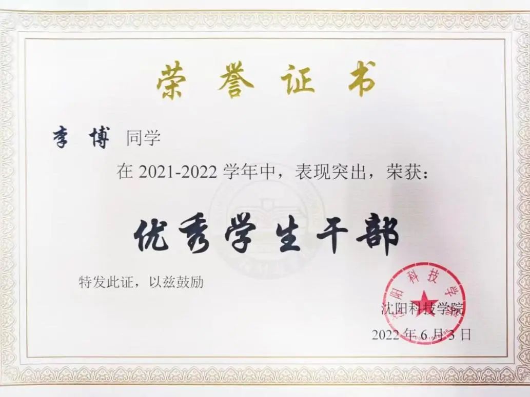 岁月不居,时光如流。入校以来,李博同学严格遵守学校的各项规章制度,孜孜不倦学习专业知识,曾获校一等奖学金两次、校二等奖学金一次;积极参加校内外各种比赛,获得省级奖项9余项,校级奖项16余项;曾获校三好学生、校优秀学生干部、校优秀共青团员等多项荣誉称号。热心公益、乐于奉献,主动参加各种志愿活动,勇于尝试,敢于挑战,以勤奋笃学,完善自己为目标;以关心国家大事为标杆,望远山而积跬步以前行。