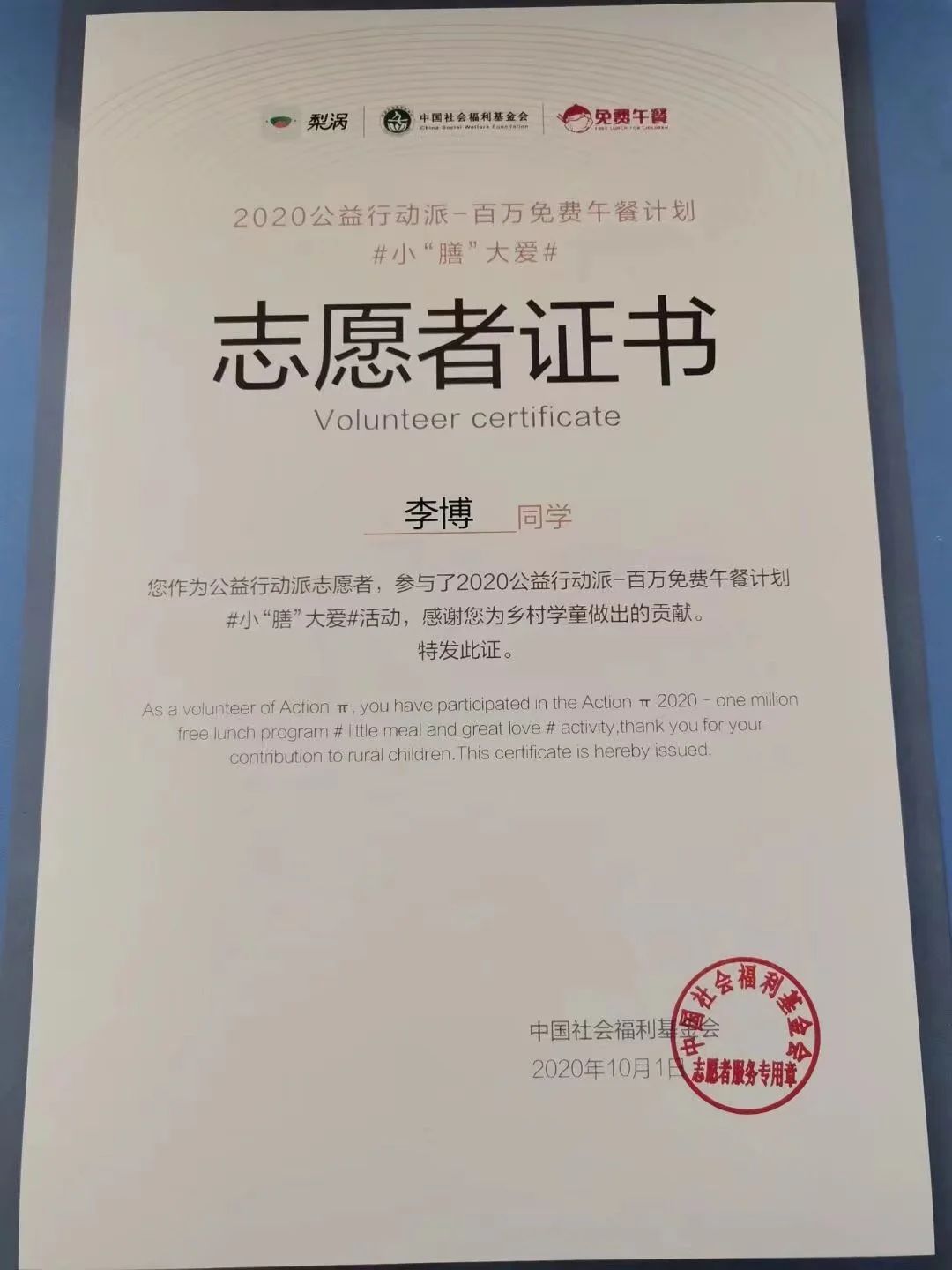 她认为,作为一名生在红旗下,长在春风里的青年,应当始终坚持冲锋在前,将小我青春融入中华民族伟大复兴的建设当中,献萤火微光筑万丈光芒,在热心公益中践行“纸上得来终觉浅,绝知此事要躬行”。
