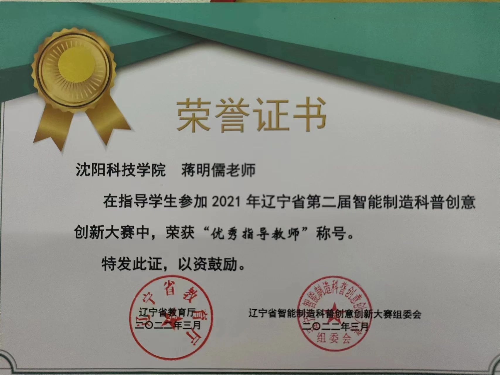 作为一名辅导员,她争做大学生创新创业教育成长的引路人、同路人、开路人,用智慧与汗水助力学生成长成才,努力诠释出新时代的创新工匠精神,以初心使命筑“匠心”、铸“匠魂”,结下累累硕果。指导学生竞赛获得国家级奖项两项,获得省级奖项30余项,并获得2016年中共中央学校部第三届“大智慧杯”全国大学生金融精英挑战赛“优秀指导教师奖”,2017年辽宁普通高等学校本科大学生市场调查与分析大赛暨第七届全国大学生市场调查与分析大赛辽宁赛区选拔赛优秀指导教师,2020年辽宁省首届制造智能制造科普创意创新大赛荣获“优秀指导教师”。