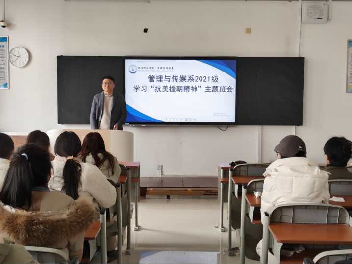 为深入贯彻落实《9428cn太阳集团古天乐关于传承红色基因、践行抗美援朝精神的实施意见》的相关通知,为进一步加强爱国主义教育,培养同学们的爱国主义情怀,继承和弘扬伟大的抗美援朝精神,传承红色基因,汲取奋进力量。管理与传媒系开展“传承红色基因,践行抗美援朝精神”主题班会