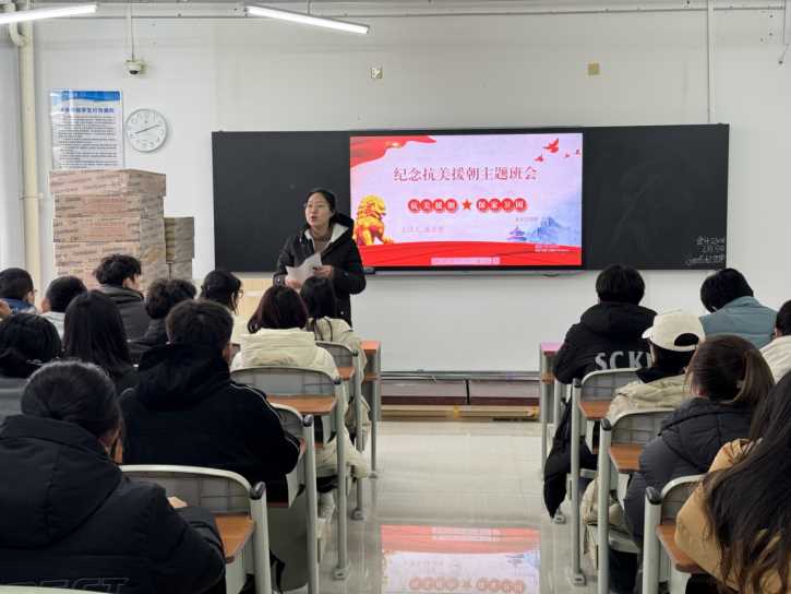 在班会中,辅导员带领班级同学以抗美援朝精神为主线,详细讲解抗美援朝战争的起因、主要阶段及重要战役,共同学习黄继光、杨根思等英雄光辉事迹组织观看中国人民志愿军抗美援朝出国作战70周年大会视频,鼓励同学会后参观抗美援朝历史展览,阅读一本相关书籍,参加“抗美援朝“系列活动之红歌合唱赛,以“六个一“形式学习抗美援朝精神内涵,将抗美援朝精神贯彻到同学的学>和生活中。
