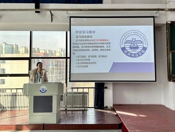 在线下会场,首先,教学副主任贾晨露介绍莅临实习就业双选会的各企业领导,并讲解了双选会流程,以及双选方式和毕业实习相关要求。接下来,党总支副书记蒋明儒老师对为期12周的实习进行安全教育。蒋老师强调人身安全、法律意识、个人及企业权益等内容,指出本次实习就业双选会是为企业和毕业生搭建桥梁,促进双方需求达成,并传达以实习促就业的精神。参会企业介绍公司各方面情况。