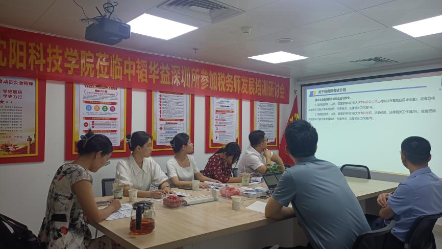 最后,双方围绕如何加强“双师双能型”教师队伍高质量建设,课程改进及校企合作进行讨论。此次我系专任教师团队赴深圳中韬华益税务师事务所的培训走访活动非常顺利,参会的所有专任教师均受益匪浅,通过这次研讨会,进一步了解了税务师行业发展的现状和未来的方向,对于中韬华益财税集团取得的成就非常钦佩,并且双方交流沟通顺畅,就推进校企合作及毕业生就业重要性与事务所领导达成共识,希望后续双方能在实习基地、课题研究、专业交流等多方面开展校企合作。