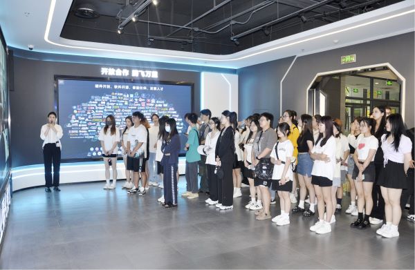 辽宁鲲鹏生态创新中心的讲解专家带领各位师生参观了鲲鹏产业孵化基地,观看了华为“芯”技术与“根”技术代表性产品,并介绍了华为生态系统、鲲鹏生态上下游合作成果以及智慧政务、智慧医疗、智慧交通等情况,也让学生体验VR技术。