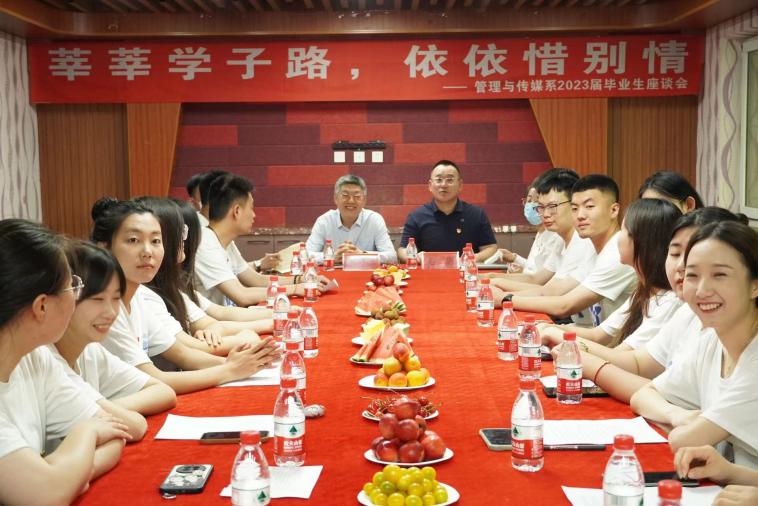 明朝即长路,惜取此时心,岁月流转,又是一年毕业季。为进一步做好毕业生关怀工作,强化校、系、生之间的情感纽带, 6月14日下午,党委书记耿乃国前往星月社区活动室和管理与传媒系2023届毕业生代表进行座谈。系党总支书记、副主任赵恩,2019级辅导员张威、李倩以及2023届优秀毕业生代表共计20余人参加本次座谈会。 座谈会在温馨而热烈的气氛中开始。2023届毕业生代表踊跃发言,深情回顾大学期间在校学...